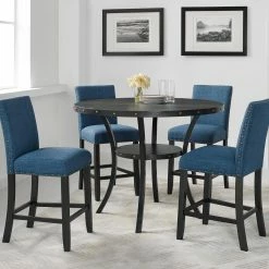 Top 10 π Counter Height Stools Roundhill Furniture Nevis Mid-Century Modern Faux Leather Tufted 24.5 In. Counter Stool – Set Of 2 – Blue π
