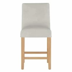 Add seating to your casual, counter-height dining table or your kitchen bar with the Armless Slipcover Upholstered 26 in. Counter Stool. This counter stool is durably handmade from rubberwood. Customize the look to best coordinate with your space by choosing from the available upholstery options and wood finishes. For comfort, the seat and backrest are padded with polyester fiber and foam.