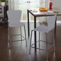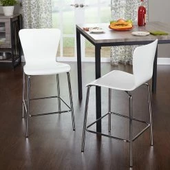 For a sleek, modish look in your updated dining room, pair the Pavia Counter Stool – Set of 2 with your counter height table. Bentwood seating is customized by your choice of available color. Stools sit on sleek chromed metal legs with integrated footrests. This set includes two counter height stools.