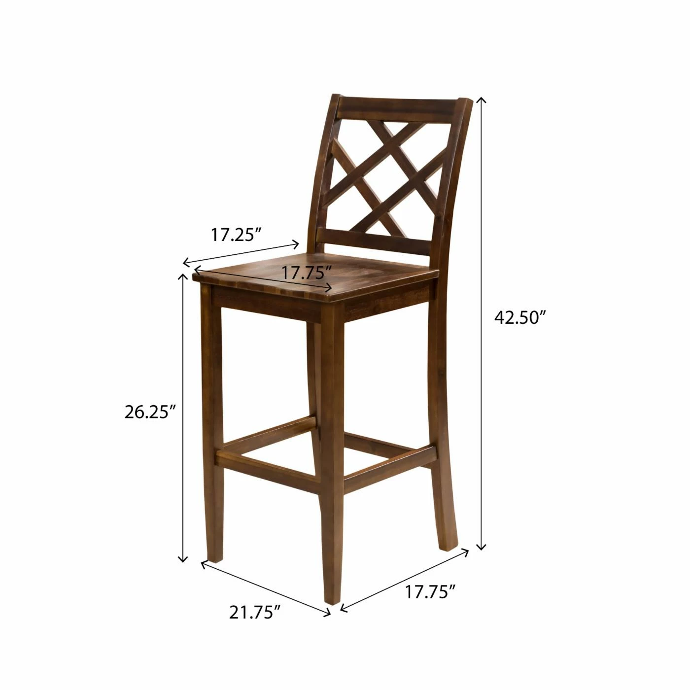 - Dimensions: 17.75W x 22.25D x 42.5H in.; Seat height: 26 in.