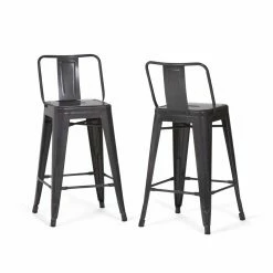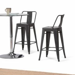 Enjoy a beverage or breakfast in modern style with the Brooklyn + Max Keeley 24 in. Slat Back Counter Stool – Set of 2, made of metal in your choice of available color. This set of two counter-height stools features a slatted back and a wide, comfortable seat. The footrest near the bottom adds support and makes these stools a comfortable place to eat and entertain.