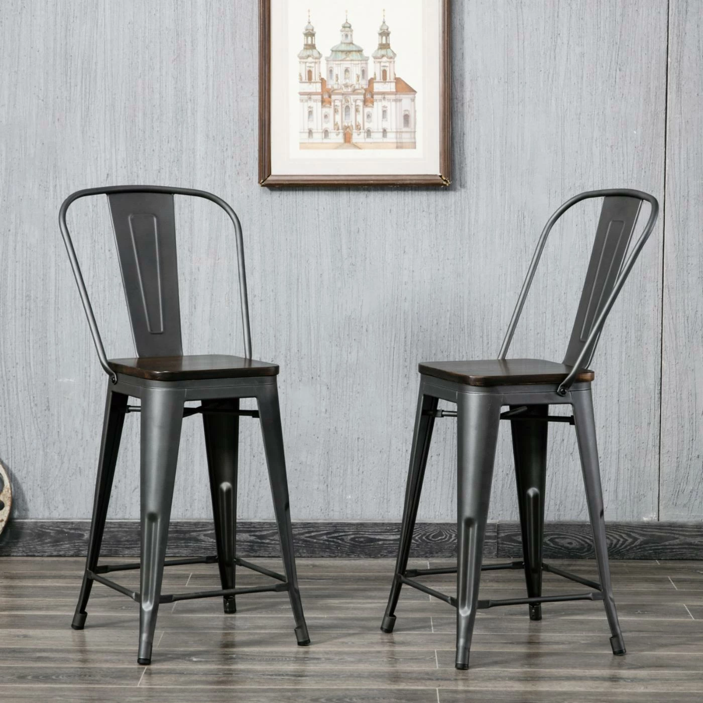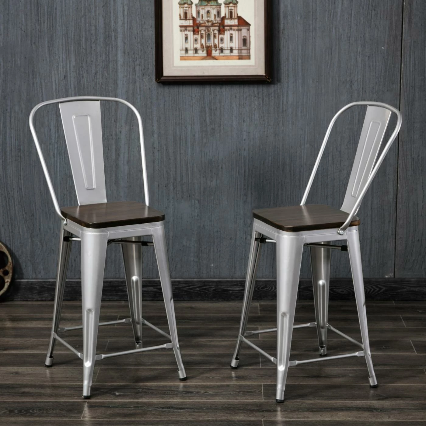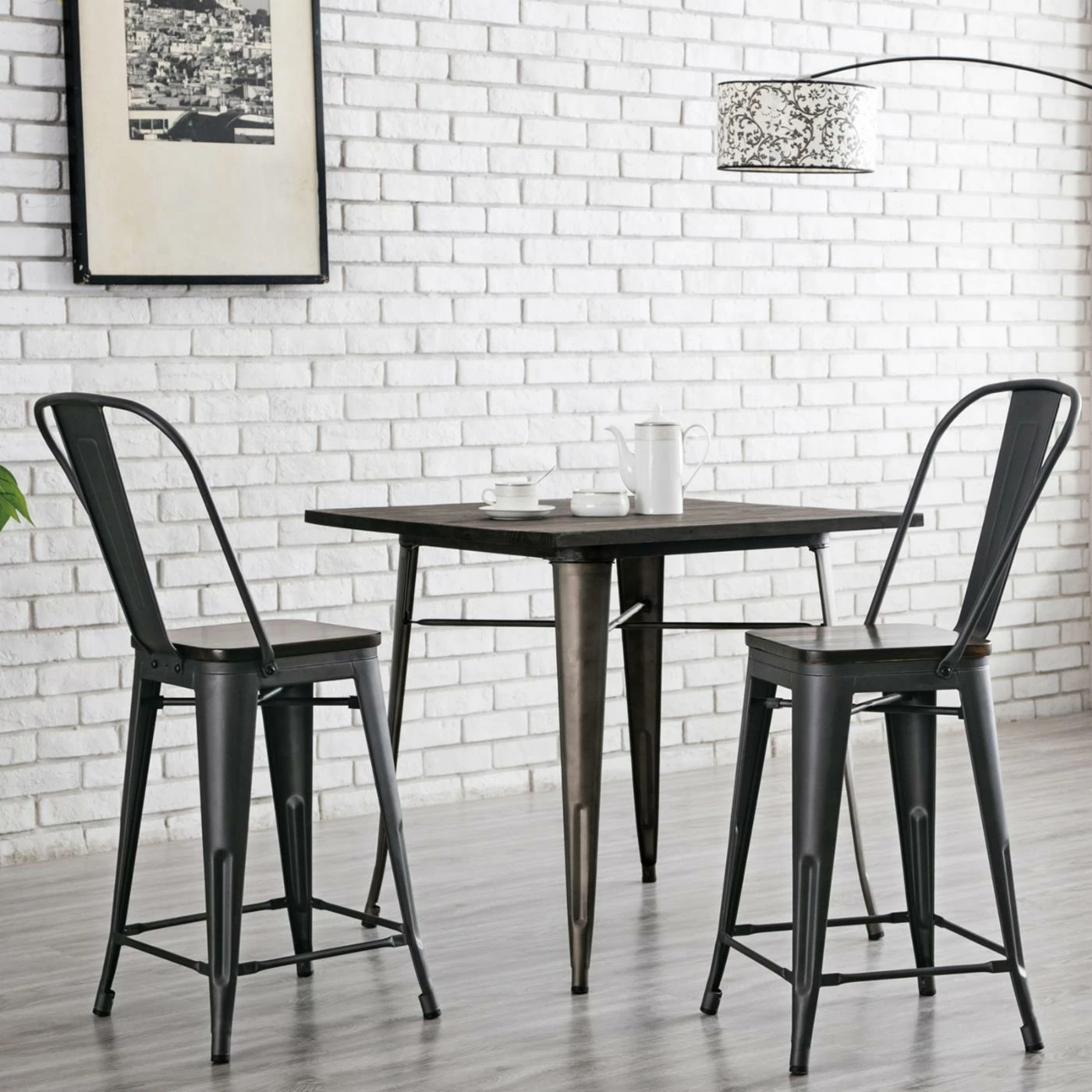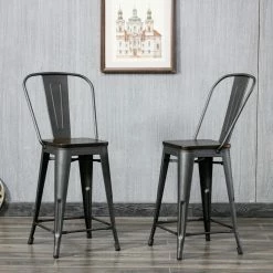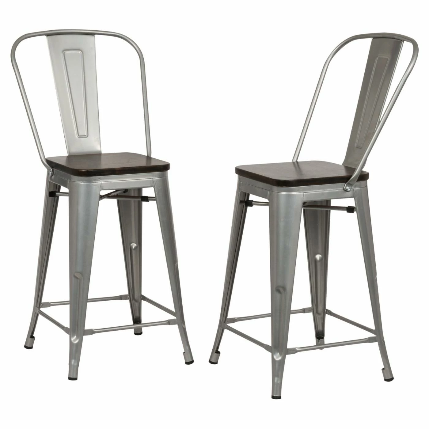 If thereβs a modern classic of industrial design, itβs the Carolina Chair & Table Co. Cashel 24 in. Splat Back Counter Stool – Set of 2. The high rounded backs and long rounded legs, inspired by school chairs of yore, are never out of place in farmhouse or downtown loft kitchens. Choose from the available solid steel frame finish options; each is topped with a solid wood seat in a warm brown elm tone. Angled backrests and all-around footrails make for comfortable lingering over coffee and conversation. The stools arrive fully assembled, and with a manufacturerβs 30-day warranty.
