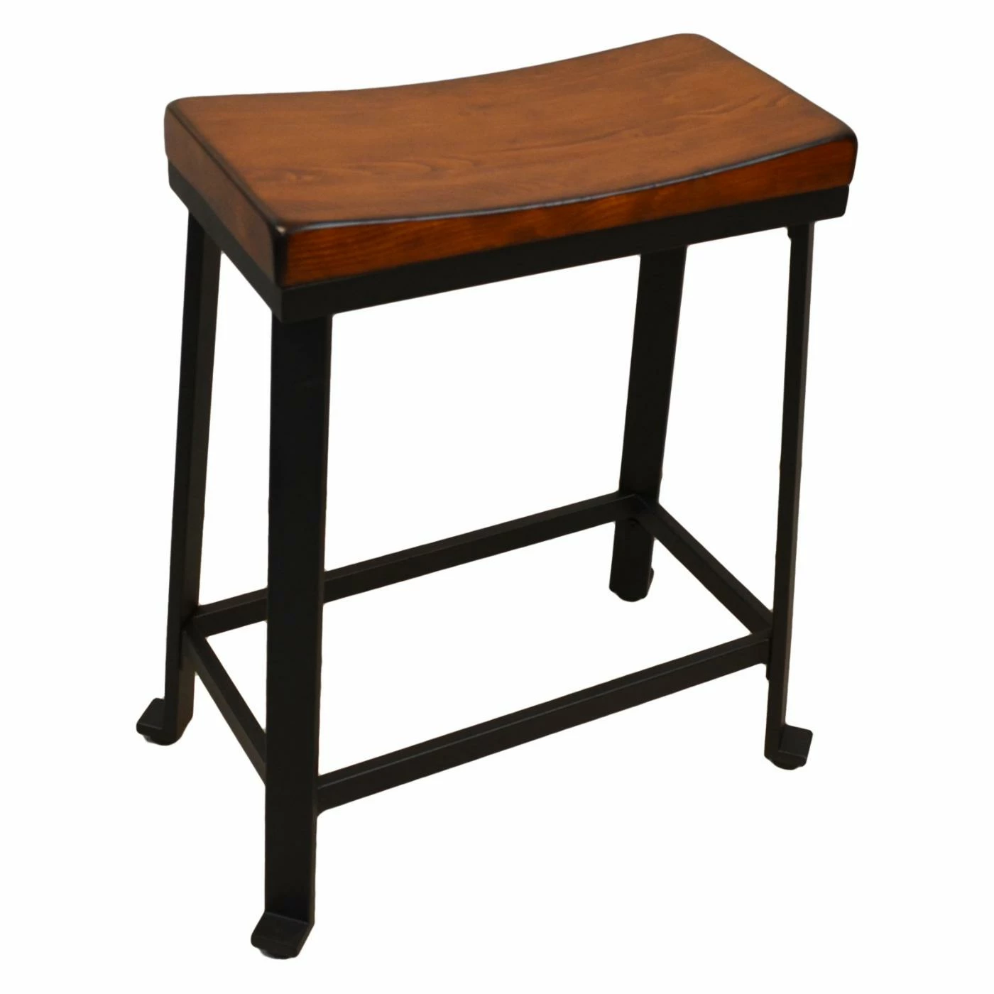 With its rustic look and simple lines, the Carolina Chair & Table Co. Oda 24 in. Saddle Seat Backless Counter Stool is a perfect seating option for your casual conversation table. The stool features a mix of materials that lend a laid back vibe. Black iron legs are simply designed and feature a powder-coated finish for lasting beauty. Integrated footrest stretchers offer stability and comfort. The comfortably contoured saddle style seat is graced by a rich chestnut finish with thoughtful distressing.