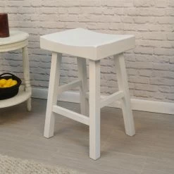 A contoured saddle style seat gives the Carolina Chair & Table Co. Thea 24 in. Backless Counter Stool its timeless appeal. This counter height stool is built tough from solid wood. Customize it by choosing from available multi-step finish options. Straight legs feature stability stretchers that double as footrests. This counter height stool has a backless design and is perfect for your conversation table.