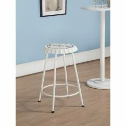 With the Acme Furniture Mant Stool White – Set of 2, entertaining guests has never been more fun. This set of two stools is perfect for adding a bit of festivity to your home bar, allowing you to gather some friends for drinks and watch the big game in style. This sturdy metal stool set is constructed of tube legs and a footrest ring, but the real allure is at the top. The novelty seat in your choice of available color is a playful bottle cap shape with the word cheer emblazoned on the surface. This set of counter-height stools is sure to enliven everyone’s spirits.