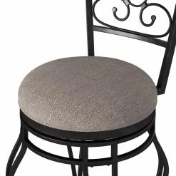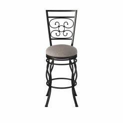 Whether you’re trying to add new life to your space or you’re building a new one from scratch, the American Woodcrafters Albany Counter Stool is a perfect way to add comfort, classic appeal, and durability to your home. This handsome, counter-height stool features a metal base that shows off curved detailing from the slender undulation of the legs to the ornate scrollwork of the backrest. A thick cushion of dense foam adds comfort to the swiveling seat while premium fabric upholstery gives it a soft touch. The light gray of the upholstery is perfectly complemented by the charcoal grey hue of frame’s powder coated finish.
