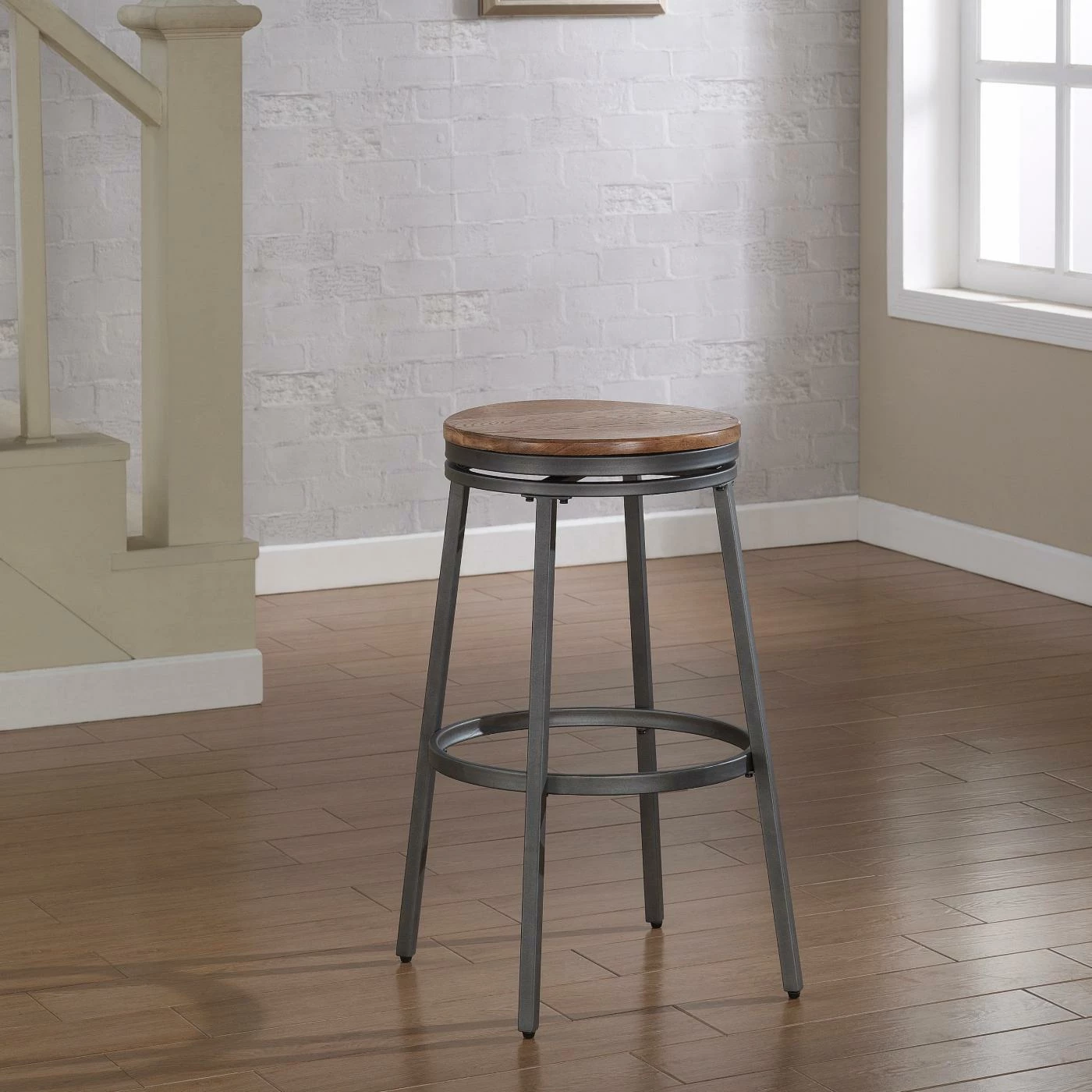 The American Woodcrafters Stockton Backless Counter Stool – Slate Gray/Golden Oak adds minimalist style and fits with most modern dΓ©cor schemes. Crafted from metal with a sleek Slate Gray finish and a hardwood seat, it offers a clean, uncomplicated design. This backless swivel stool is sure to make a statement in your home.
