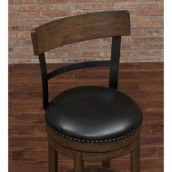 Simple, comfortable. What does your style say about you? The American Woodcrafters Taranto Swivel Counter Stool is designed for relaxing spaces where friends and family gather to make memories and share conversation. The ladder back creates an open composition for your kitchenette or bar area, while the bonded leather seat is filled with three inches of fire-retardant foam so guests sink in as they enjoy your master chef skills. Complete with a full-circle swivel function, convenient foot rail, and a contoured back for superior support. Assembly required; 250-pound weight capacity.
