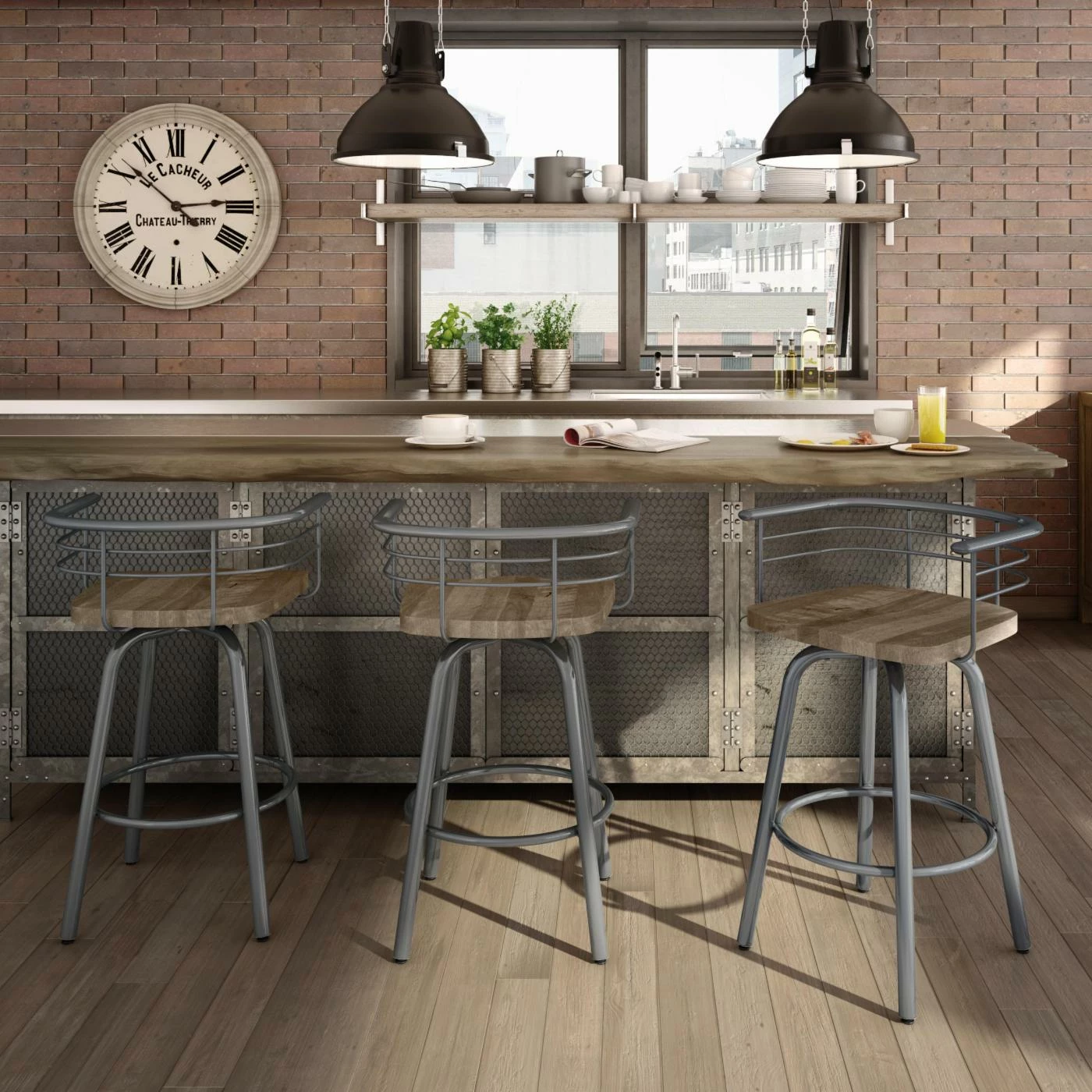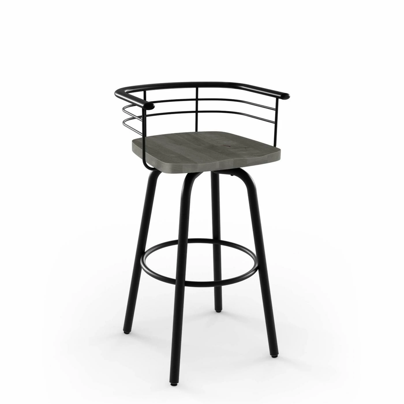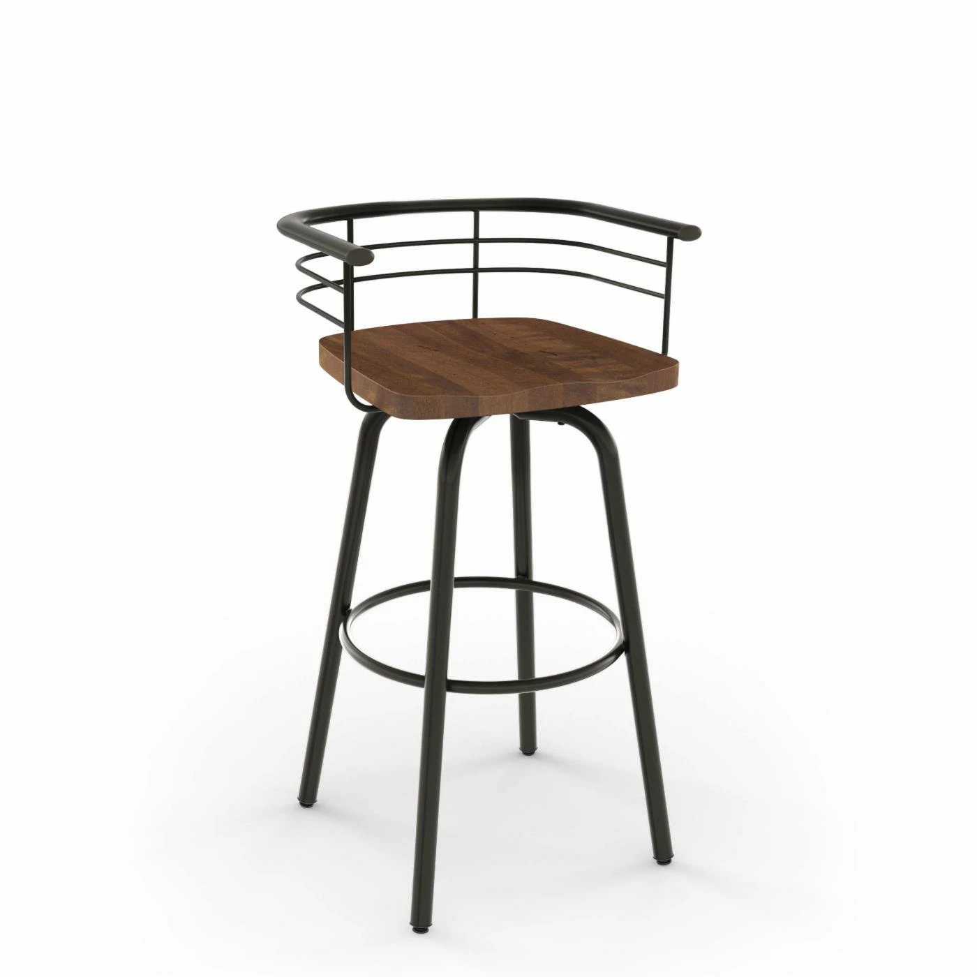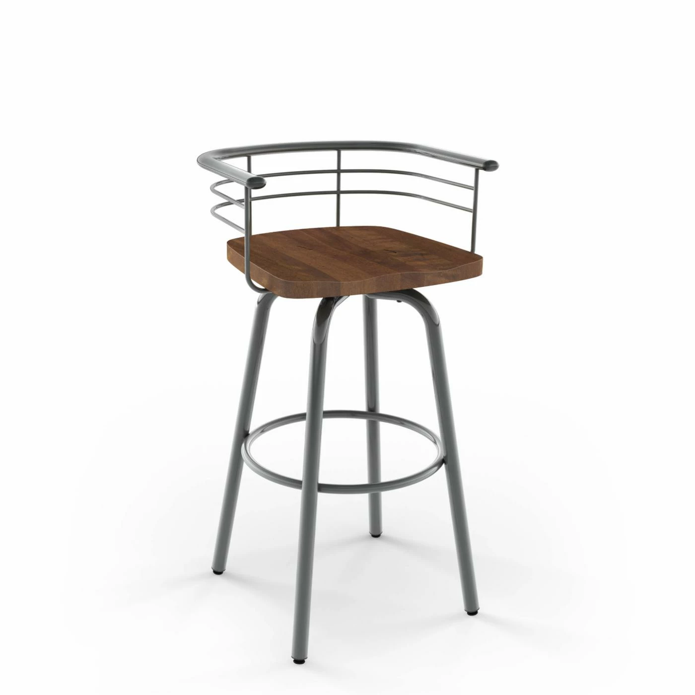 The Amisco Brisk 26 in. Swivel Counter Stool puts the finishing touch on your industrial kitchen. Crafted of birch wood and steel, this rustic stool features a fully welded structure for increased durability. Simple yet functional, this counter stool showcases a low back and swiveling design. Its scratch-resistant baked powder coating ensures lasting use and is lead free and environmentally safe. Choose from available finish options.
