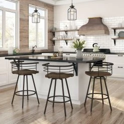 Entice your guests to stay a little while longer with the Amisco Denton 26 in. Swivel Counter Stool. This stool has a counter-height frame with wide, splayed legs, made from metal. A ring footrest provides all-around support. Thick wood constructs the seat, featuring a contoured shape for ample comfort. Add a seat cushion for even more plushness. The backrest and arms have a curved design with open horizontal rails. Choose among the available finish options to best match your kitchen’s look.