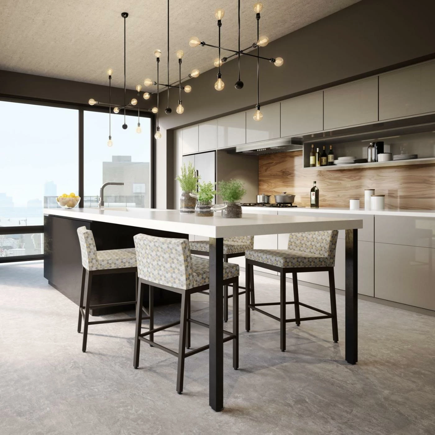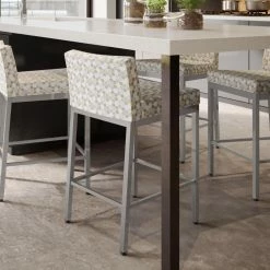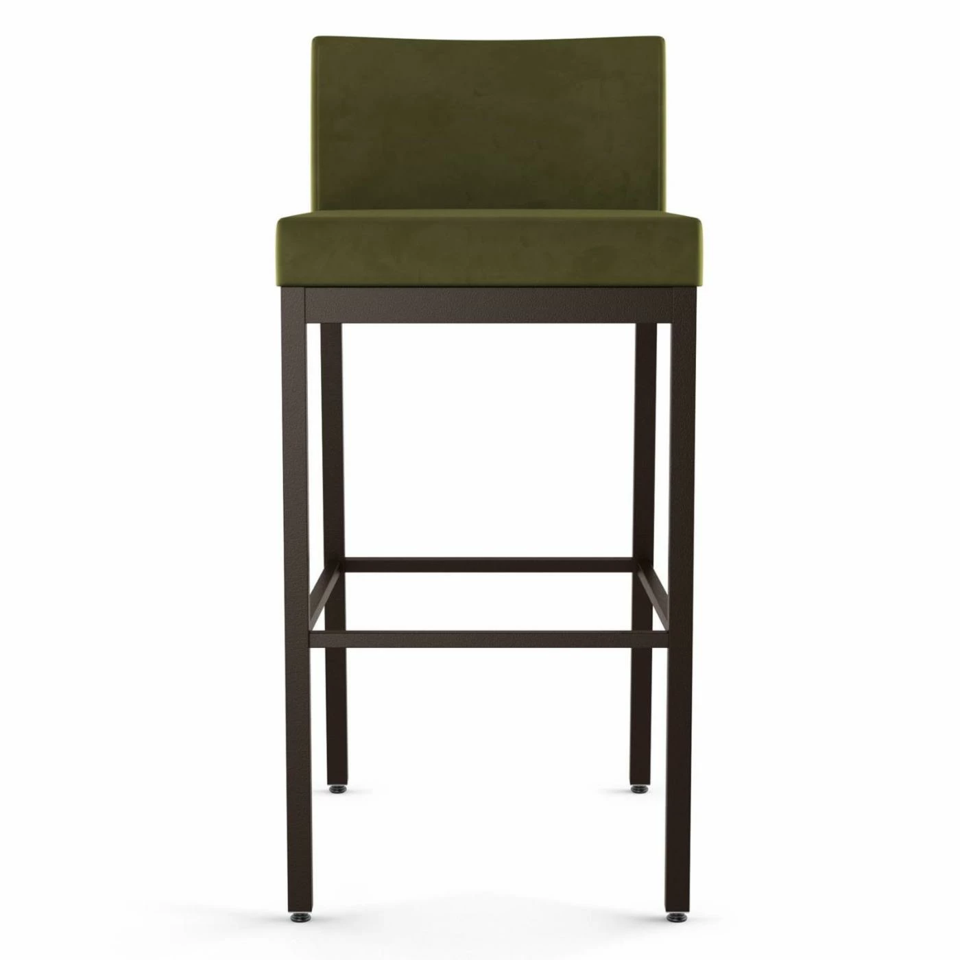 The Amisco Fairfield 26-in. Metal Counter Stool showcases a chic, inviting look that’s perfect for sidling up to the kitchen island or sitting at a particularly tall dining table. Unlike most traditional stools, this contemporary design features a low-profile back for lumbar support and generous foam padding upholstered in faux leather that continues throughout the seat. In addition to its luxurious seating, the stool also comes with a resolute foundation comprised of all-welded steel in the available finish of your choice, plus stabilizing stretchers that double as an all-around footrest. Some assembly is required.