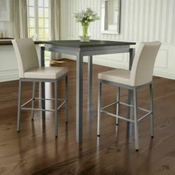 It is hip to be square with the Amisco Perry Counter Height Metal Stool. Showing off a squared style, this counter-height stool gives us an armless design made from cold-rolled steel with a powder-coated finish. The tall back and wide seat are wrapped in thick foam cushioning that’s covered in supple faux leather. Your choice of available finish on the open-style frame gives you the chance to customize this piece to fit your space.