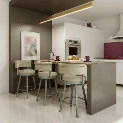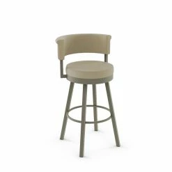 Update your kitchen or breakfast eatery with the Amisco Rosco 27-in. Metal Swivel Counter Stool. This tall, generously padded seating option is expertly crafted from a fully welded steel frame in your choice of available finish and sports a 360-degree swivel seat with contoured back support. Easy-to-clean polyester fabric wraps around the thick foam seat and shapely back. Enhancing your experience even more, a large ring reinforces the angular legs for greater stability while also providing a convenient footrest. Some assembly is required.