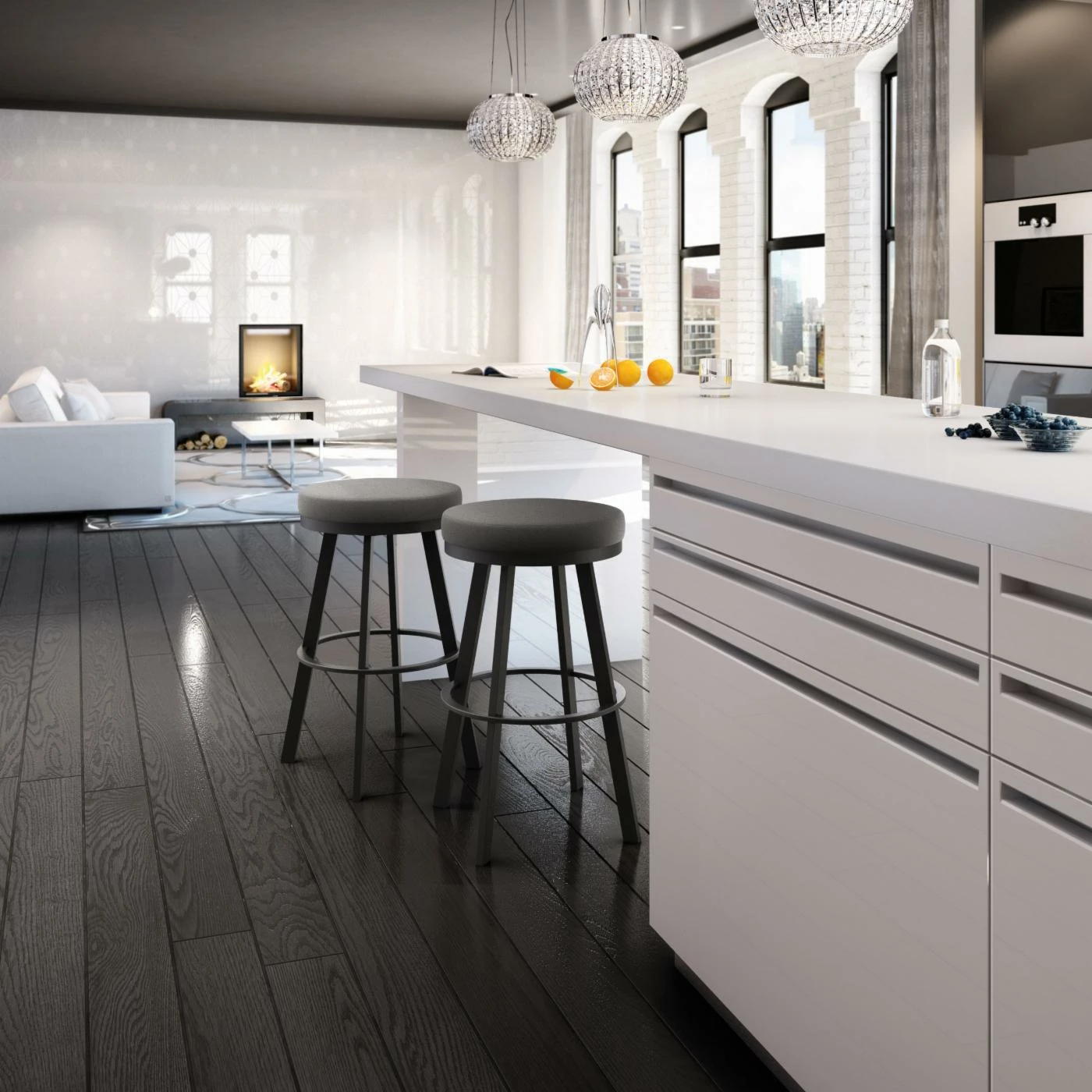 The Amisco Swice Backless Swivel Counter Stool 26 in. offers unapologetically high-class style that brings a bold new level of sophistication to your surroundings. This unquestionably modern stool features an all-metal base with supportive footrest that wraps all the way around so that you can find purchase no matter where you swivel. The seat itself is generously sized and comfortable cushioning upholstered in your choice of opulent fabric or leather. The Swice Backless Swivel Stool is also available in your choice of black coral or magnetite frame finish.