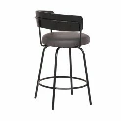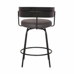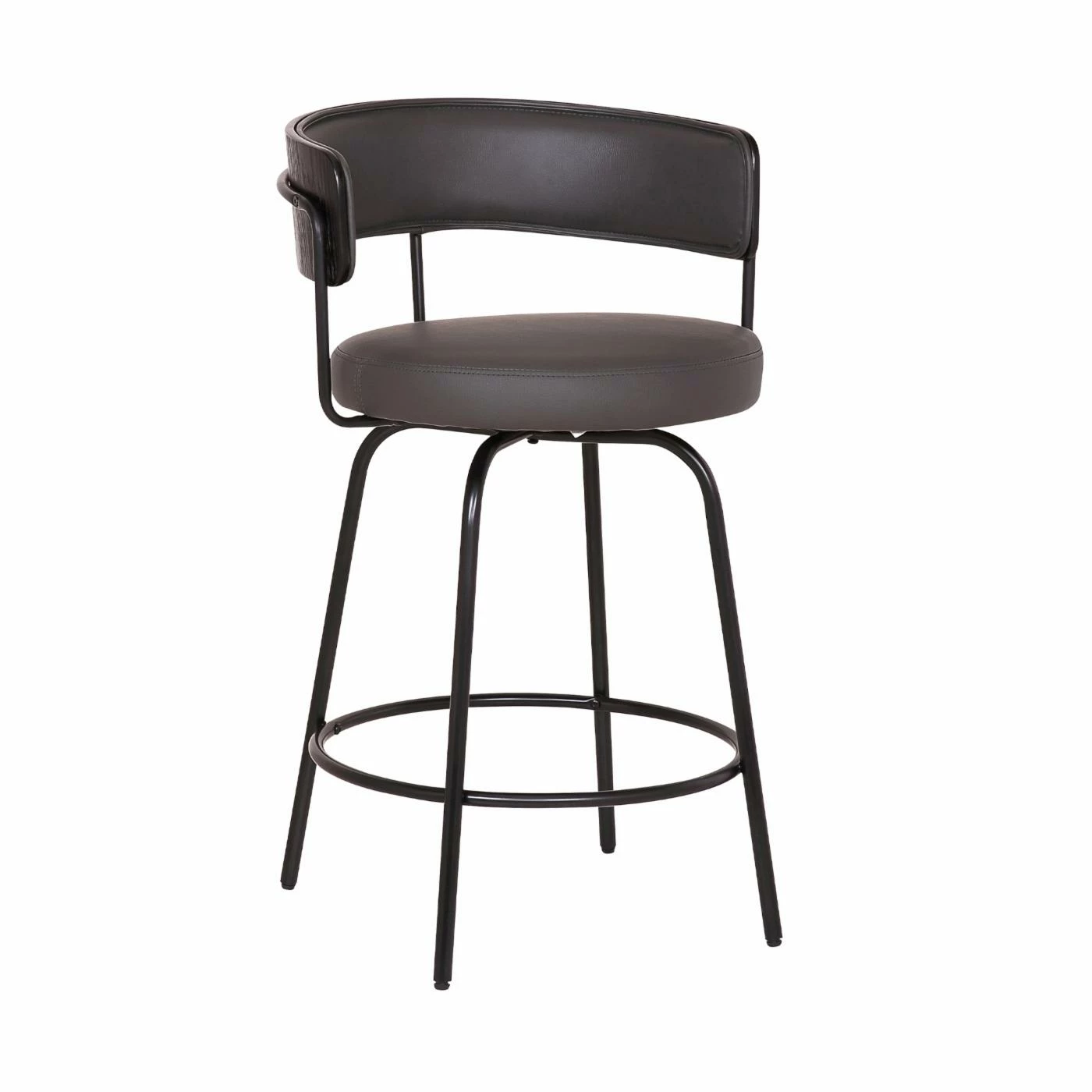 Update your kitchen counter area with the clean, minimalist design and faux leather upholstery of the Armen Living Avalon 26 in. Swivel Counter Stool. Featuring a curved back with black brushed wood, padded faux leather seat, and ring footrest, this bar stool allows you to lounge in easy comfort. A steel frame with black powder coat finish offers sturdy and durable performance.