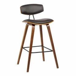 Entertain mid-century modern style with the Armen Living Fox 26 in. Mid-Century Counter Height Bar Stool. Long, sturdy engineered wood legs finished in a handsome walnut accent the curved seat and backrest. Faux leather creates a plush and luxurious look thatβs perfect for formal and informal settings alike. Rest your feet on the durable, coated metal footrest and enjoy a relaxing evening with friends and family.