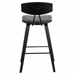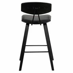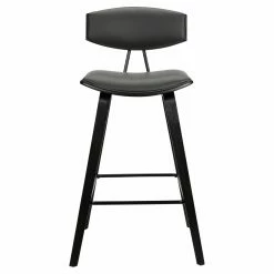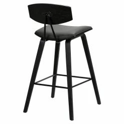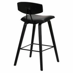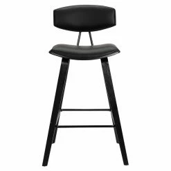The Armen Living Fox 26 in. Upholstered Counter StoolΒ is a sophisticated and functional contemporary piece certain to enhance the aesthetic of the modern home. The Fox’s frame and legs are made of a black brushed plywood while the back and seat are upholstered in black faux leather. The modern barstool includes a metal footrest that allows for added comfort and style.Β