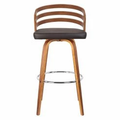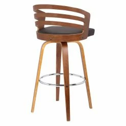 Add versatile seating and a warm, casual style to your dining space with the Armen Living Jayden Mid-Century Swivel Counter Height Barstool. This barstool features a sturdy walnut wood frame that’s topped with a faux leather upholstered seat. The seat swivels fully for added comfort and convenience.
