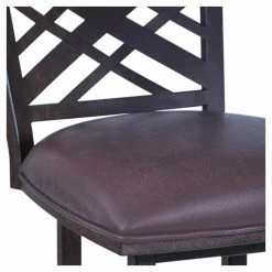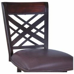 The Armen Living Tahiti 26 in. Upholstered Swivel Cross Back Counter Stool offers the perfect seating option to truly relax within. Completing the truly island look and feel, the finish is a beautiful Auburn Bay, traditional Brown Faux Leather allow the look of the backrest, seat, and legs to perfectly complement each other. In order to provide a truly optimal range of motion and comfort, the Tahiti barstool not only swivels smoothly, but is also is without armrests to ensure truly seamless movement and rotation of not only the barstool, but the person enjoying it as well.