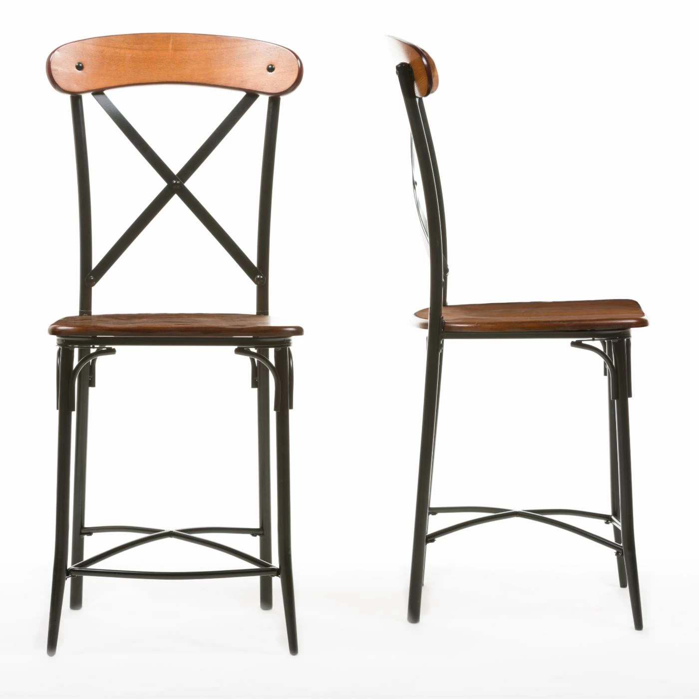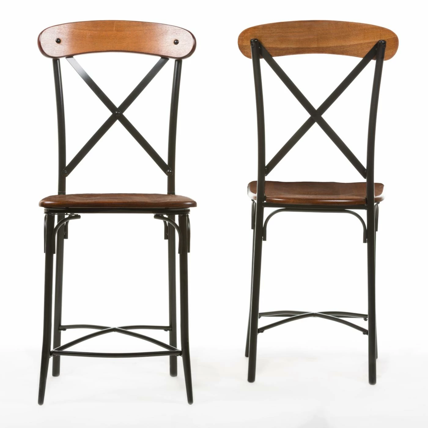 The Baxton Studio Broxburn Counter Stool – Set of 2 is a rustic pair with contemporary flair. Each stool is crafted from a tubular metal frame in antique black finish with distressed brown ash veneer wood accents on the seat and back for a vintage-industrial look that blends nicely with almost any decor. The attractive back features X-style slat details mirrored by the stretchers that add enhanced support to the slender legs. These stools are great for the kitchen island, breakfast nook, or bar.