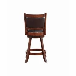 Give your home a touch of English charm with the Boraam 24 in. Rhea Swivel Counter Stool. Beautifully constructed, this stool has a solid rubber wood frame and plywood back. The faux leather seat and back add a sophisticated touch youβll love. Available in your choice of finish, this stool complements a wide variety of decors.