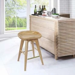 Give your home a touch of English charm with the Boraam 24 in. Rhea Swivel Counter Stool. Beautifully constructed, this stool has a solid rubber wood frame and plywood back. The faux leather seat and back add a sophisticated touch youβll love. Available in your choice of finish, this stool complements a wide variety of decors.