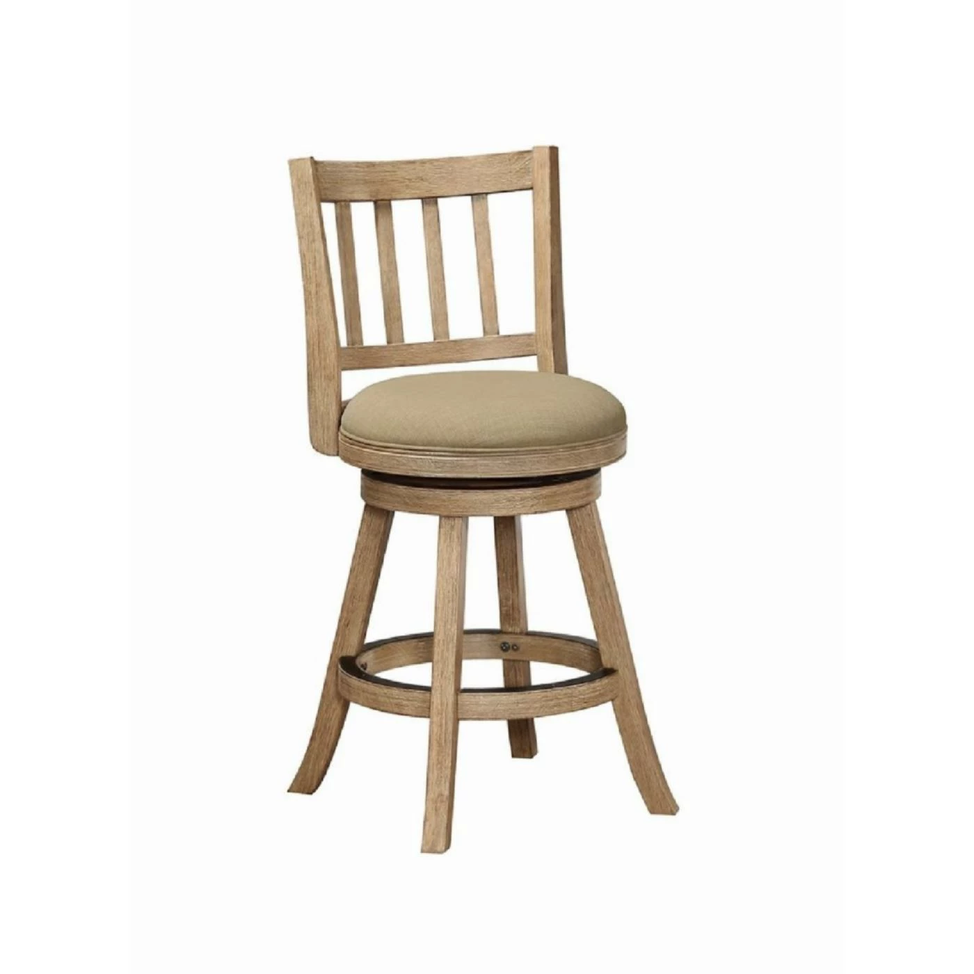 Shoot for three; with the Boraam 24 in. Sheldon Counter Stool, you’re assured of style, durability and comfort. It’s a winsome combination that makes this finely crafted rubberwood barstool an instant favorite for urban moguls and stylish country folk alike. Rubberwood offers teak-like durability along with the resilience of a softer wood like birch, making this a barstool that can handle the roughest customers. (Warranted only for use in a residential setting, if you please.) The wire-brushed finish in chic driftwood gray elevates the look to a new dimension. Linen upholstery on the padded, swiveling seat allows for hours of comfortable lounging.