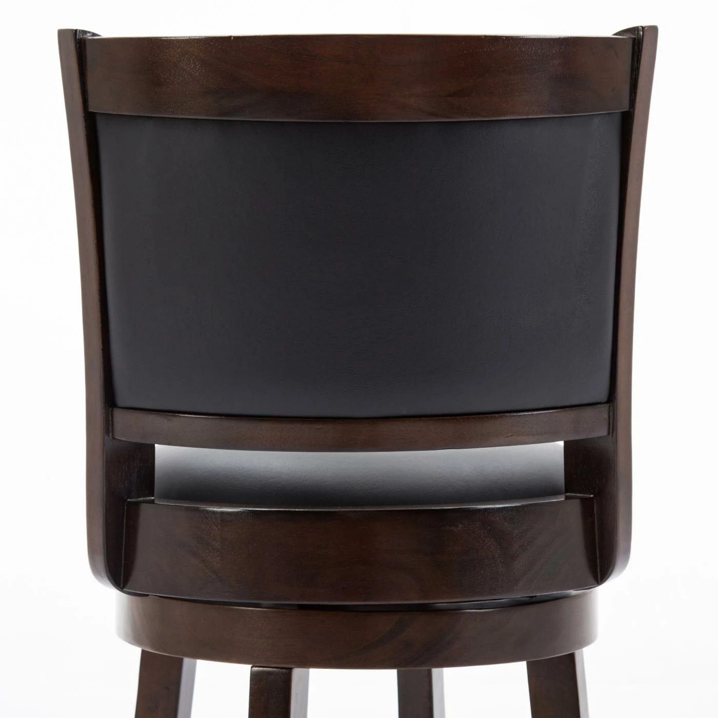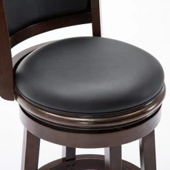 The Boraam Augusta 24 in. Swivel Counter Stool features a clean, comfortable design, making it ideal for any home. The large footrest in the front and the stretchers connect the legs to keep the stool stable. The padded, swivel seat and back provide comfort, while the solid hardwood frame ensures durability. Seat and back are upholstered with faux leather material. Choose from several wood finishes to complement your decor. Please note: This item is not intended for commercial use. Warranty applies to residential use only.