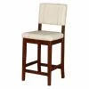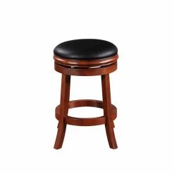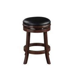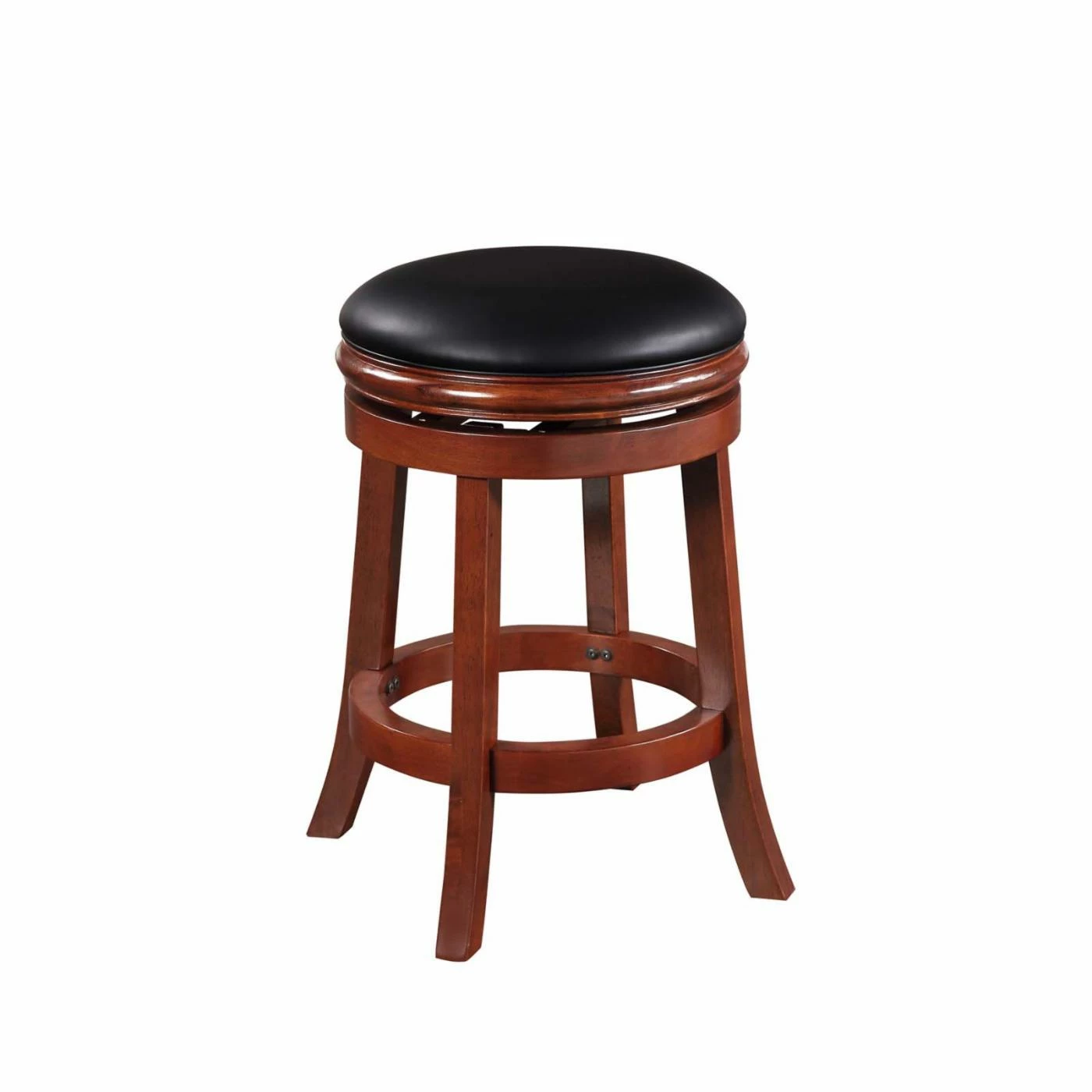 Flared legs and a full-ring footrest add stability to the luxurious Boraam Backless Swivel Counter Stool. This handsome stool features a traditional backless design crafted from solid wood with a meticulously carved seat apron, flared legs, and the attractive finish of your choice. While its frame is undeniably fetching, the seat boasts single welt cord trimmed leatherette upholstery that feels amazing and includes a smoothly rotating 360-degree swivel plate.