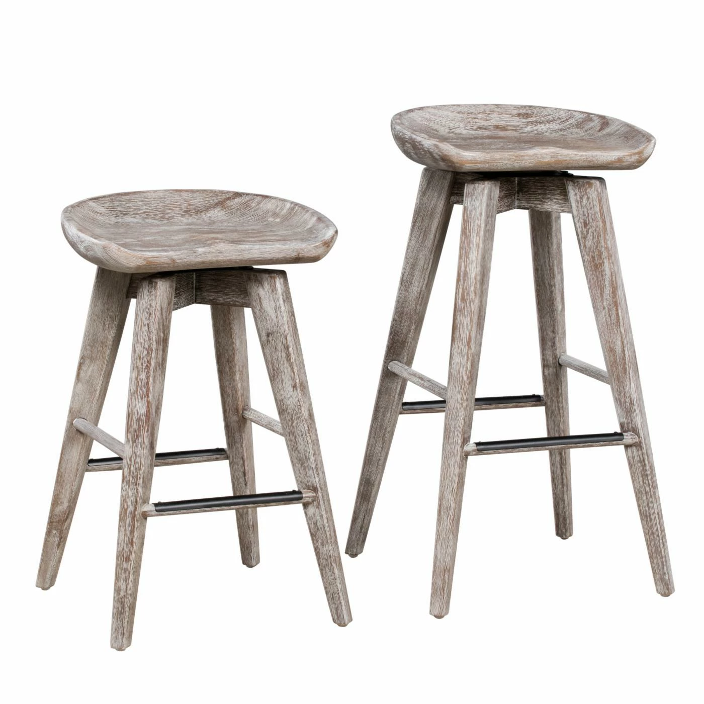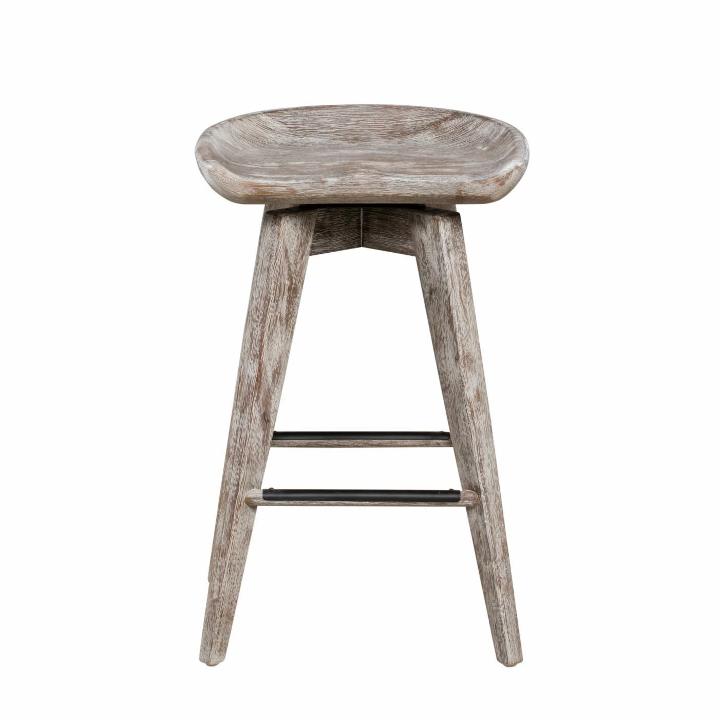 Enjoy rustic-style seating with an updated twist from the Boraam Bali 24 in. Swivel Counter Stool. Constructed from solid hardwood, this counter stool features angled legs and a comfortable, contoured seat carved from one piece of wood. The 360-degree swivel function delivers smooth, easy rotation, and metal kick plates protect the stool from everyday wear. Finished in Barnwood Wire Brush, this counter stool brings a breezy, stylishly weathered look to your kitchen.