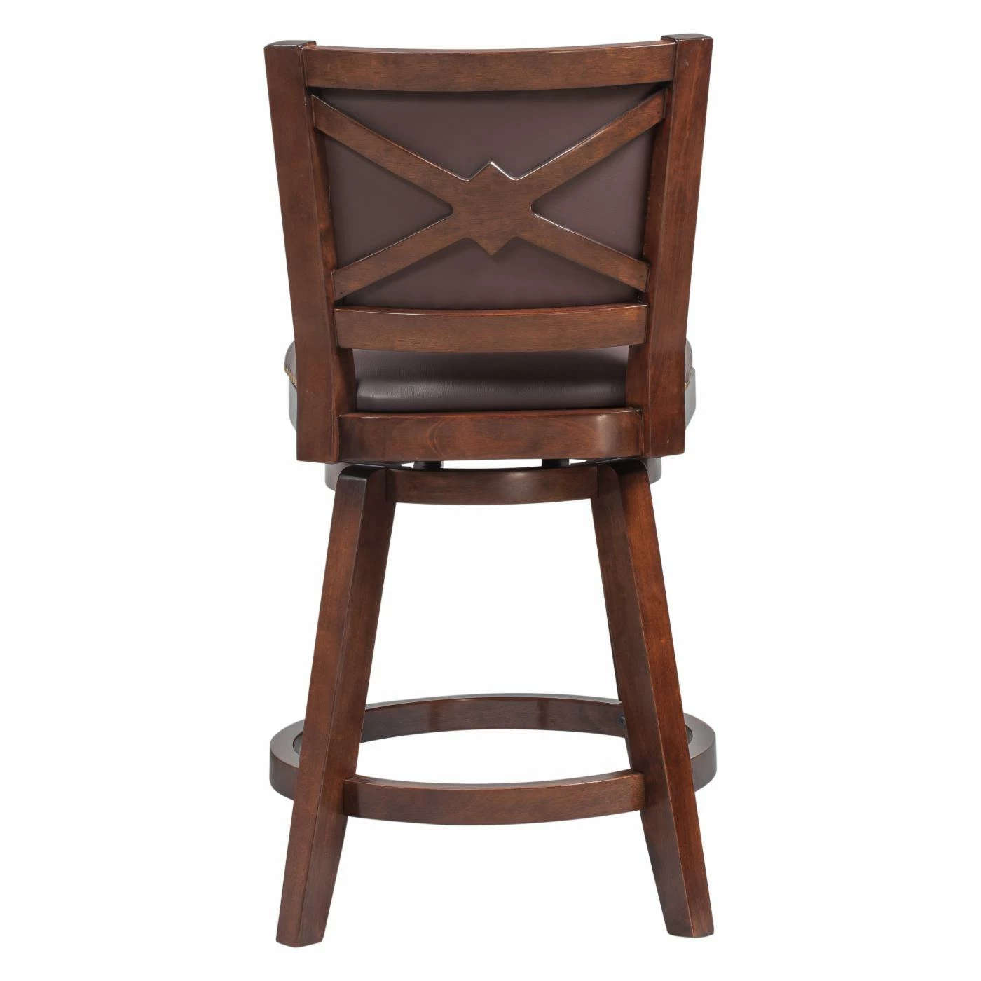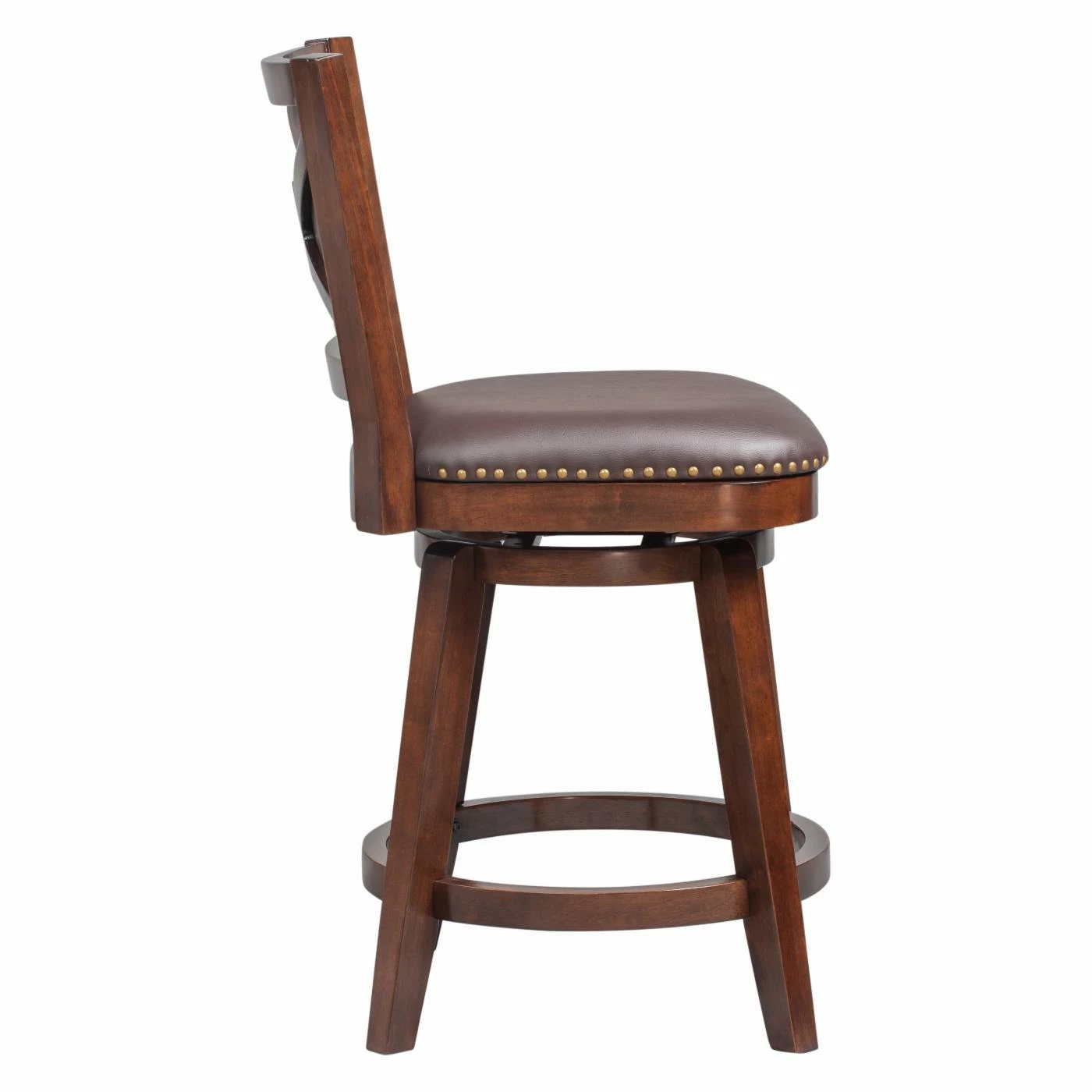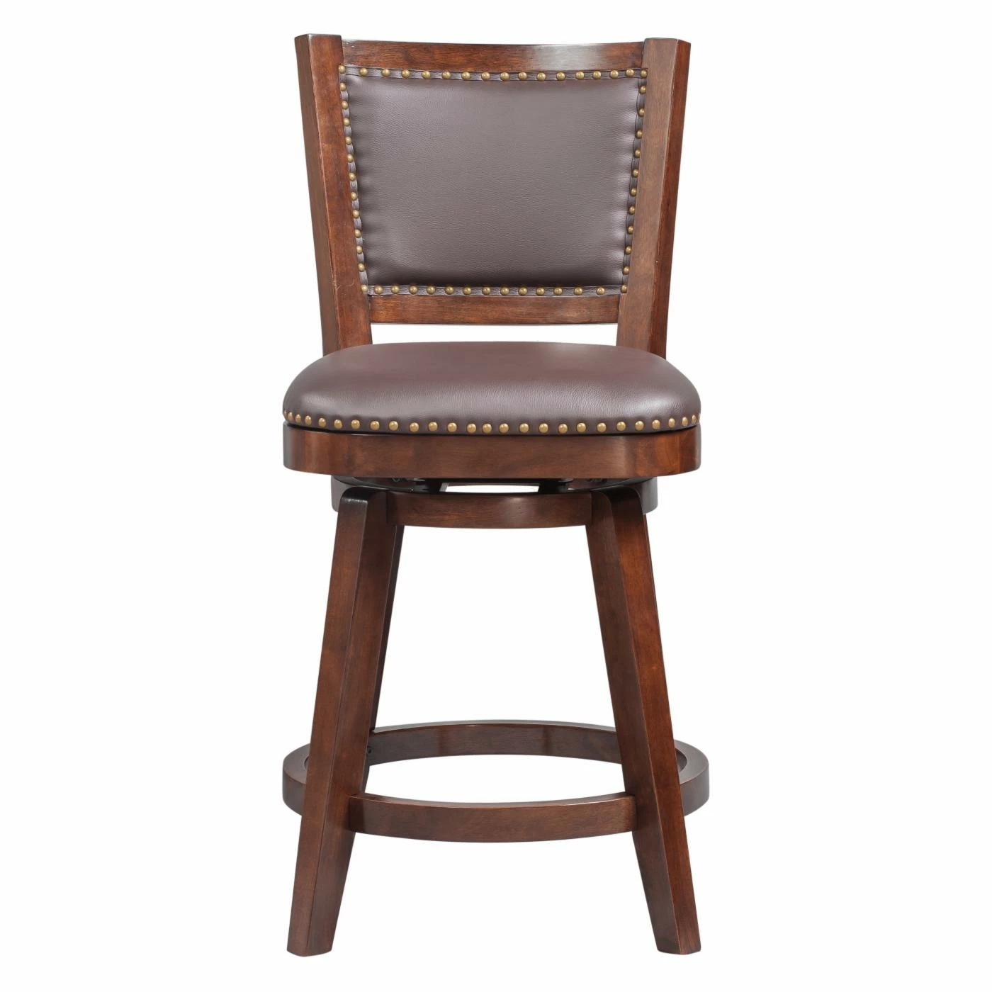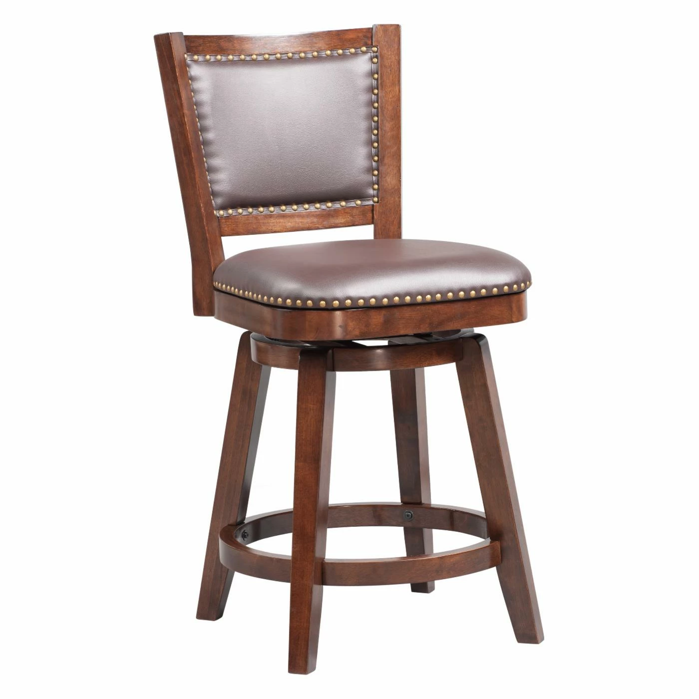 Sit up tall with confidence when you dine with the Boraam Broadmoor Swivel Counter Stool. Featuring a solid rubberwood frame and faux leather upholstery on the seat and chair back, this stool is available in your choice of finish and offers a swivel design. It has nailhead trim for a modern edge and includes a rounded footrest.