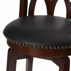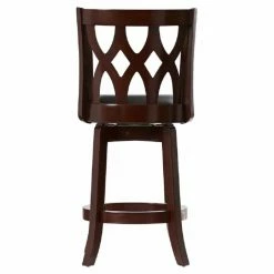 We love how this elegant chair can be so comfortably casual. TheΒ Boraam Cathedral 24 in. Swivel Counter Stool – Dark CherryΒ is a magnificent work of sculpted hardwood, with a cathedral window seat back and gracefully curved, tapered French style legs. There’s a full foot ring for added strength, stability and comfort. We like the nailhead accents around the thickly padded, circular black faux leather seat, counter-height to fit the most contemporary furniture. Steel ball-bearing swivel moves easily and silently. Foot protectors won’t marr up flooring. Backed by a 90 day manufacturer’s warranty. Assembles easily. Stool dimensions: 18W x 22D x 37.5H inches, counter seat height 24 inches. Please note: This item is not intended for commercial use. Warranty applies to residential use only.