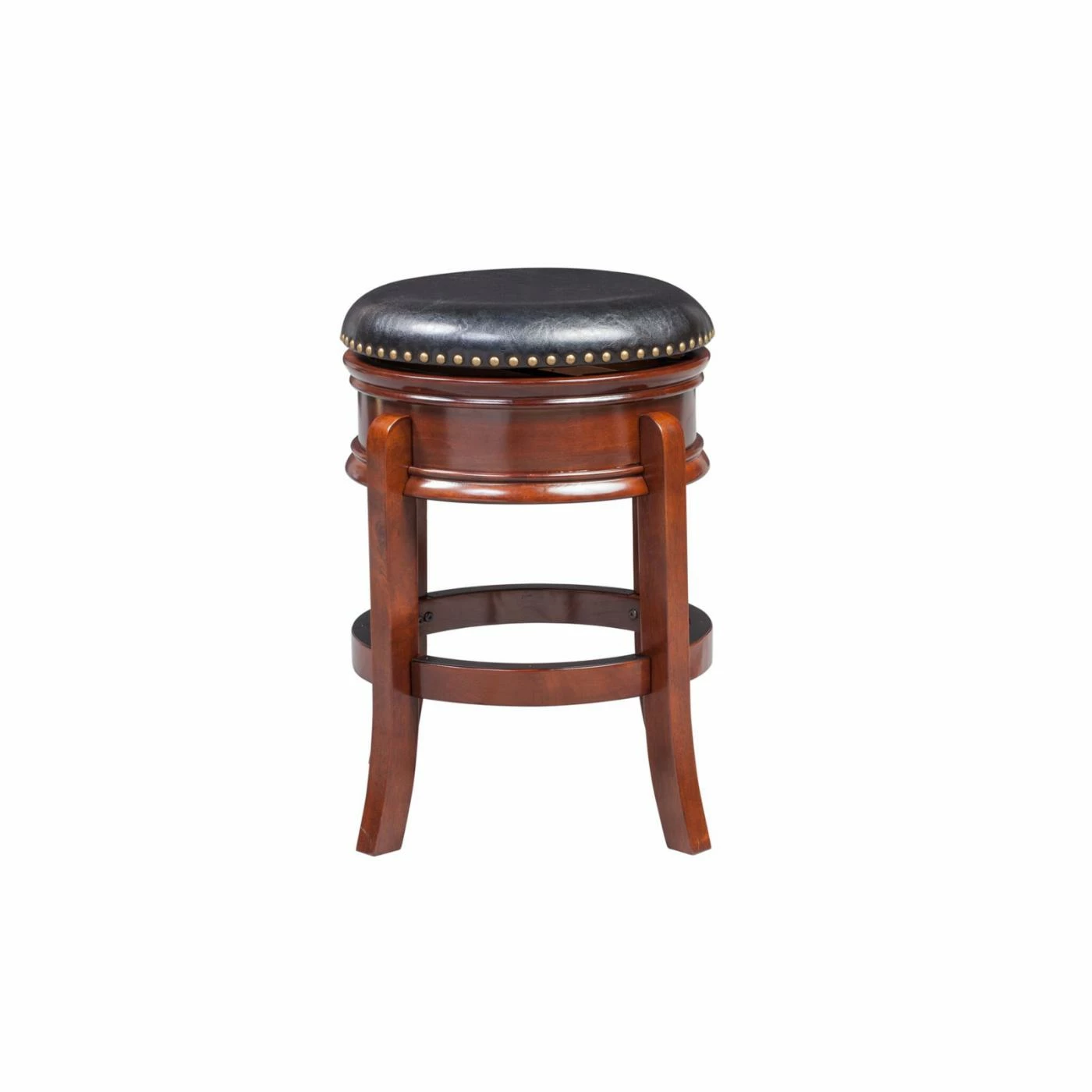 With the help of the Boraam 24 in. Hamilton Leather Swivel Backless Counter Stool, you can renew your seating space with style. The Hamilton is composed of solid hardwood and engineered to perfection. The decorative nail-head trim is made from authentic brass material, and each leg has a strategic flare design that provides durability and balance. The high-density foam encased with bonded leather on the seat provides maximum comfort. Additionally, the steel swivel plate features full ball-bearing designs for an effortless 360-degree turn. The Hamilton is available in your choice of beautiful color finishes. Dimensions: 18W x 18D x 24H inches.