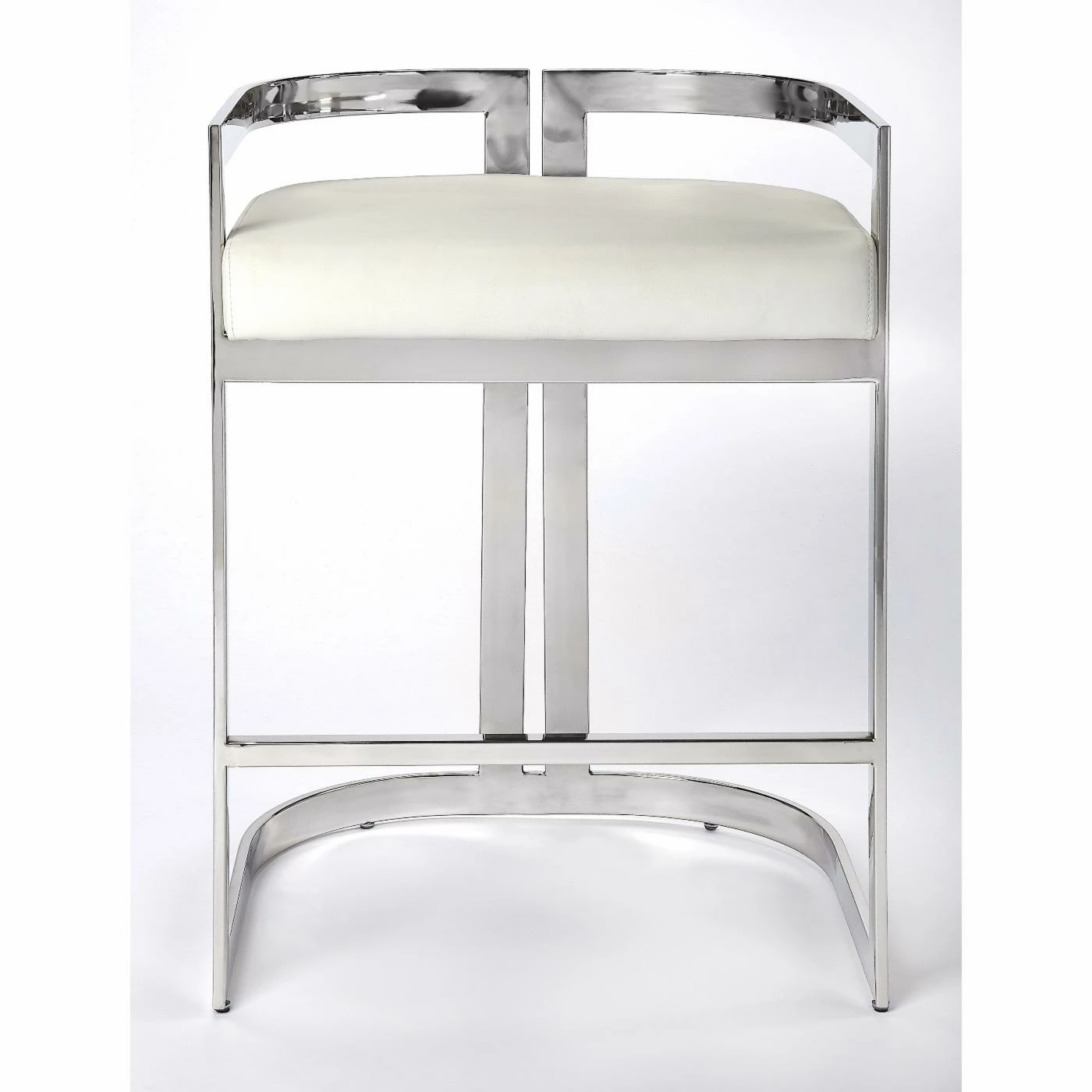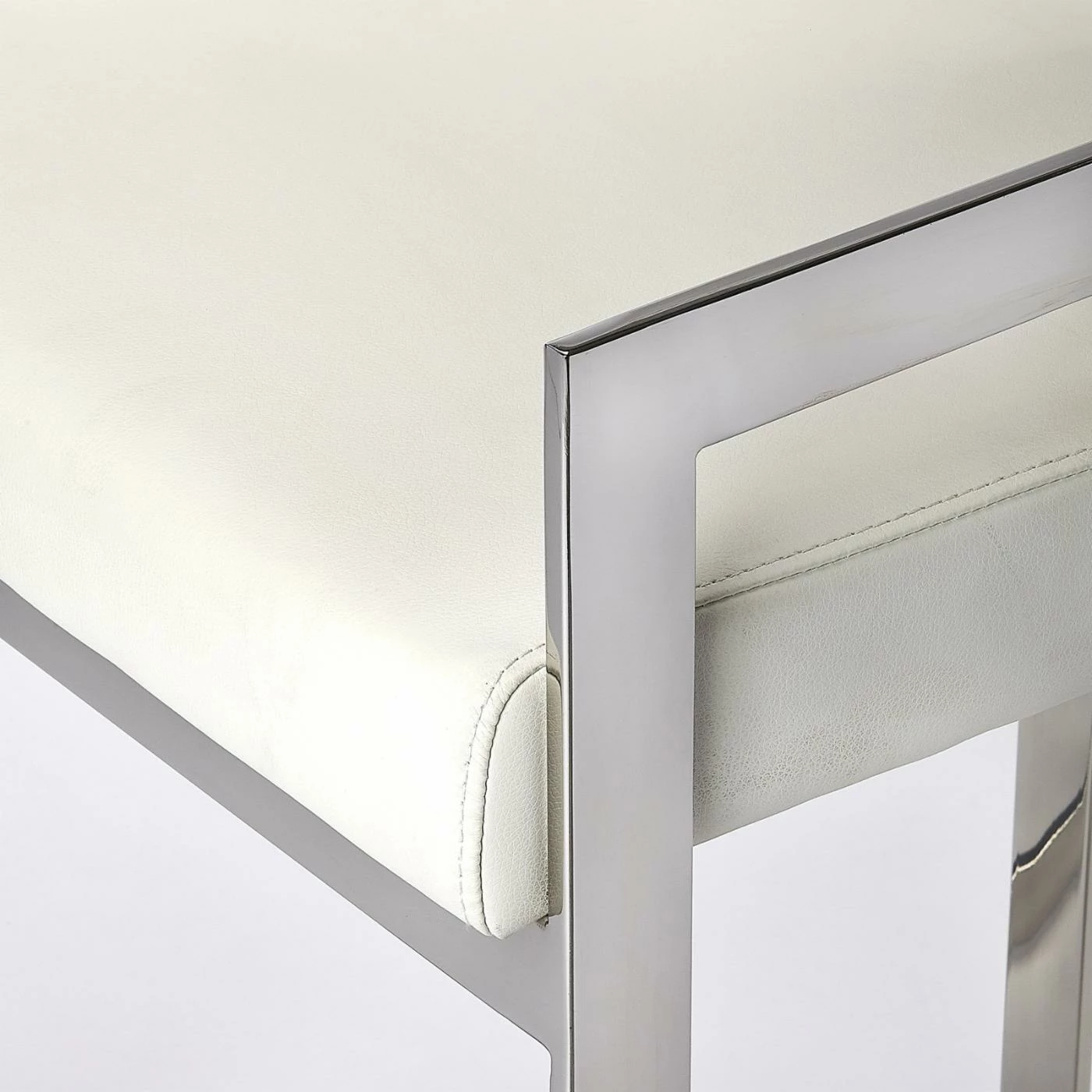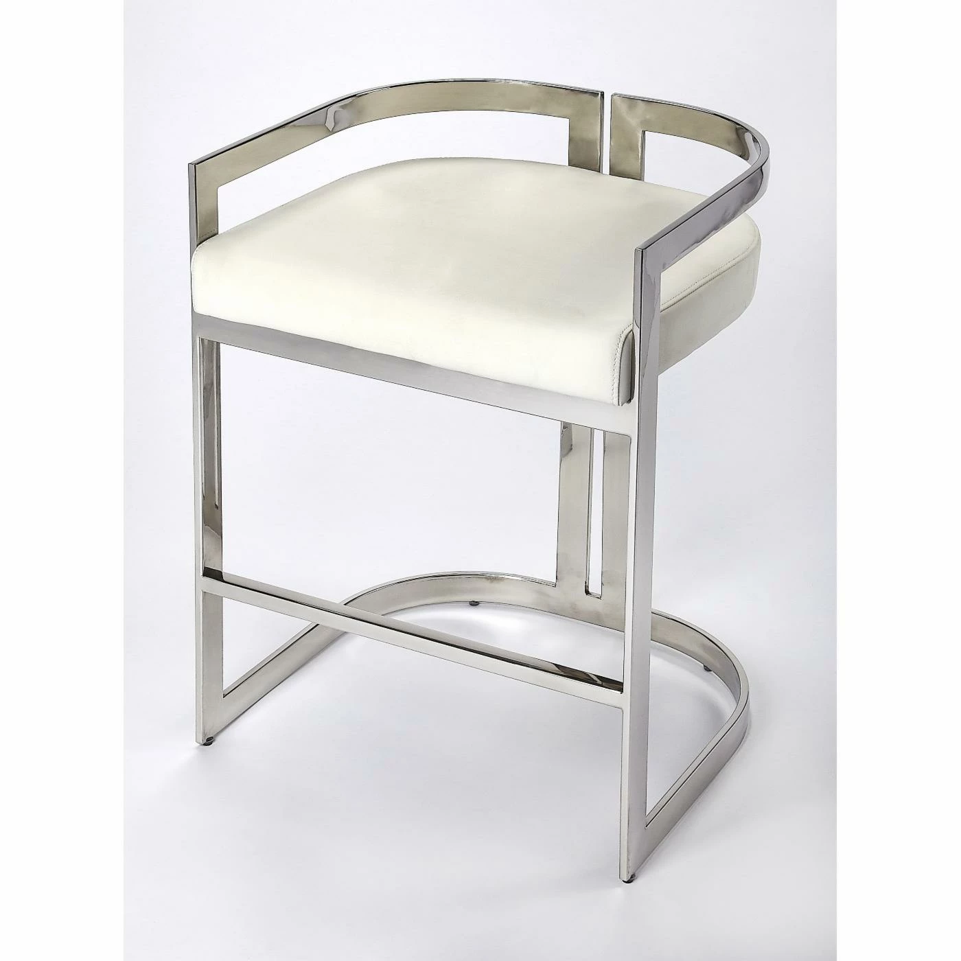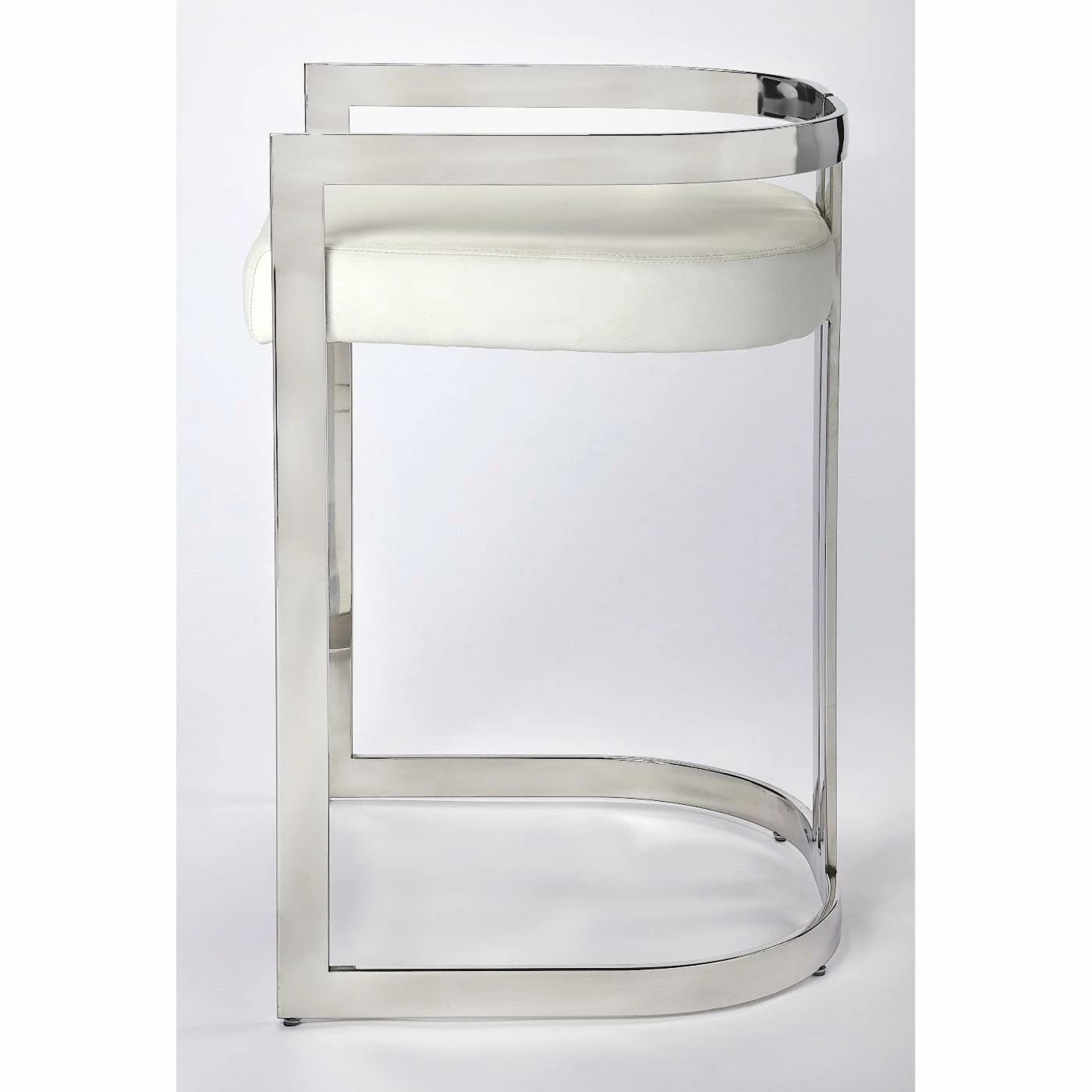 Add the Butler Specialty Clarence 24 in. Faux Leather Counter Stool to your kitchen counter for a modern look. This counter-height stool is supported by a stainless steel frame with a curved, low backrest. The seat is cushioned with PU foam for comfort and upholstered with faux leather. For stability, the base is equipped with leveling glides.