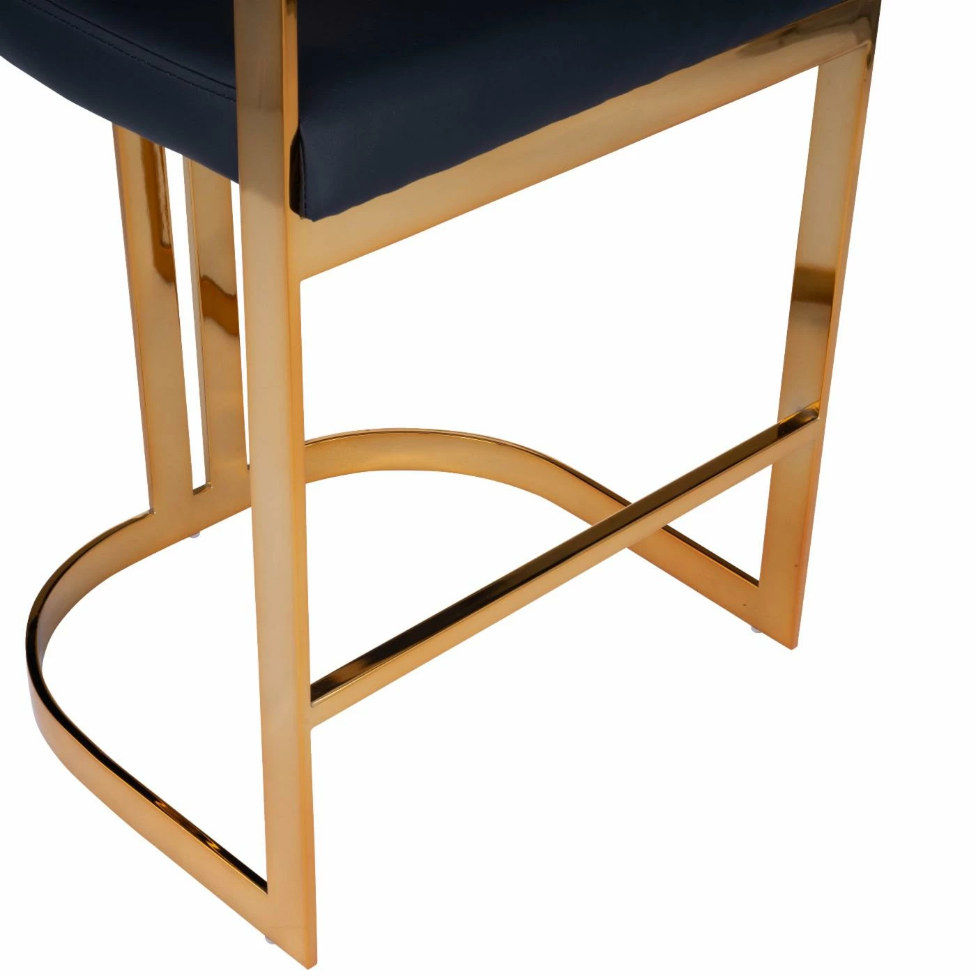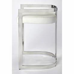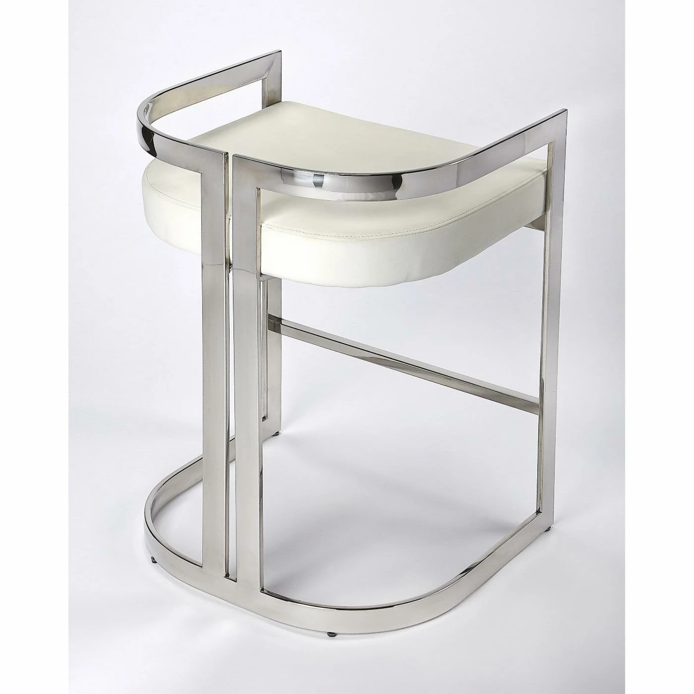 The Butler Specialty Clarence 25 in. Faux Leather Counter Stool‘s pairing of shining metal and faux leather seat is what modern glam is all about. The open frame and curved back aren’t without their comforts: lower backrest and arm supports, plus a built-in footrest that doubles as a stability stretcher. Polyurethane foam cushions the seat. Choose from available finish options.