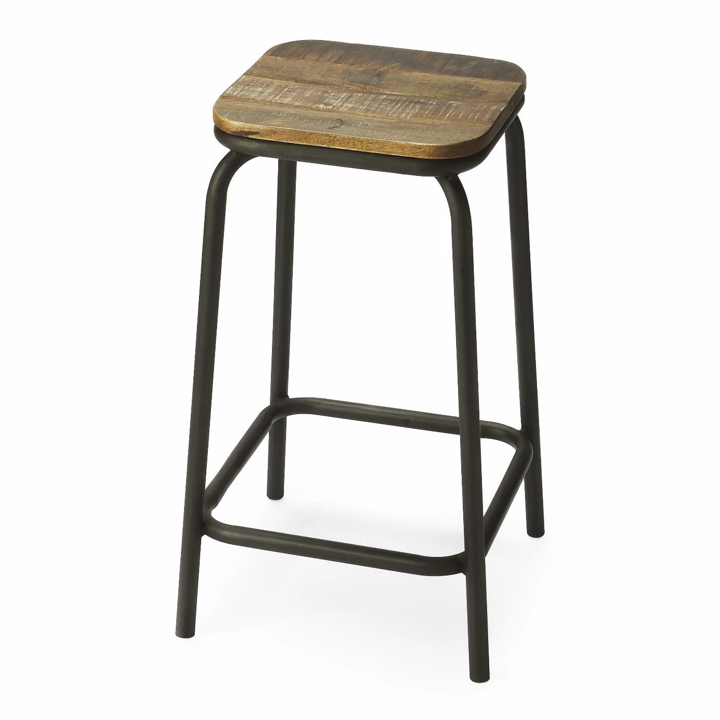 The industrial chic Butler Specialty Industrial Chic 25 in. Bar Stool uses a mix of materials to create its rugged vibe. This bar stool boasts a square mango wood top with natural finish and rounded edges. Its black metal tube frame features stability stretchers that double as footrests.