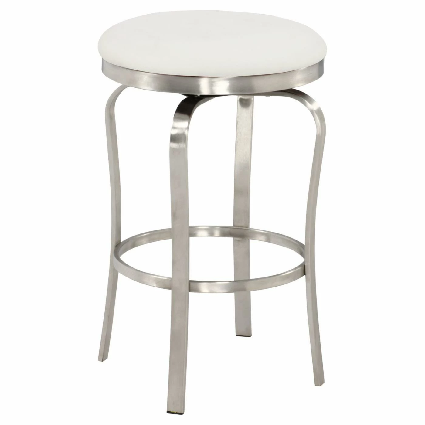 With a sleek backless construction, the Chintaly Colby Modern Backless Counter Stool is the perfect accent to your home. With plush comfort, its button-style seat comes in either white or red leather. Its stainless steel frame is extra sturdy and has a gleaming silver finish.