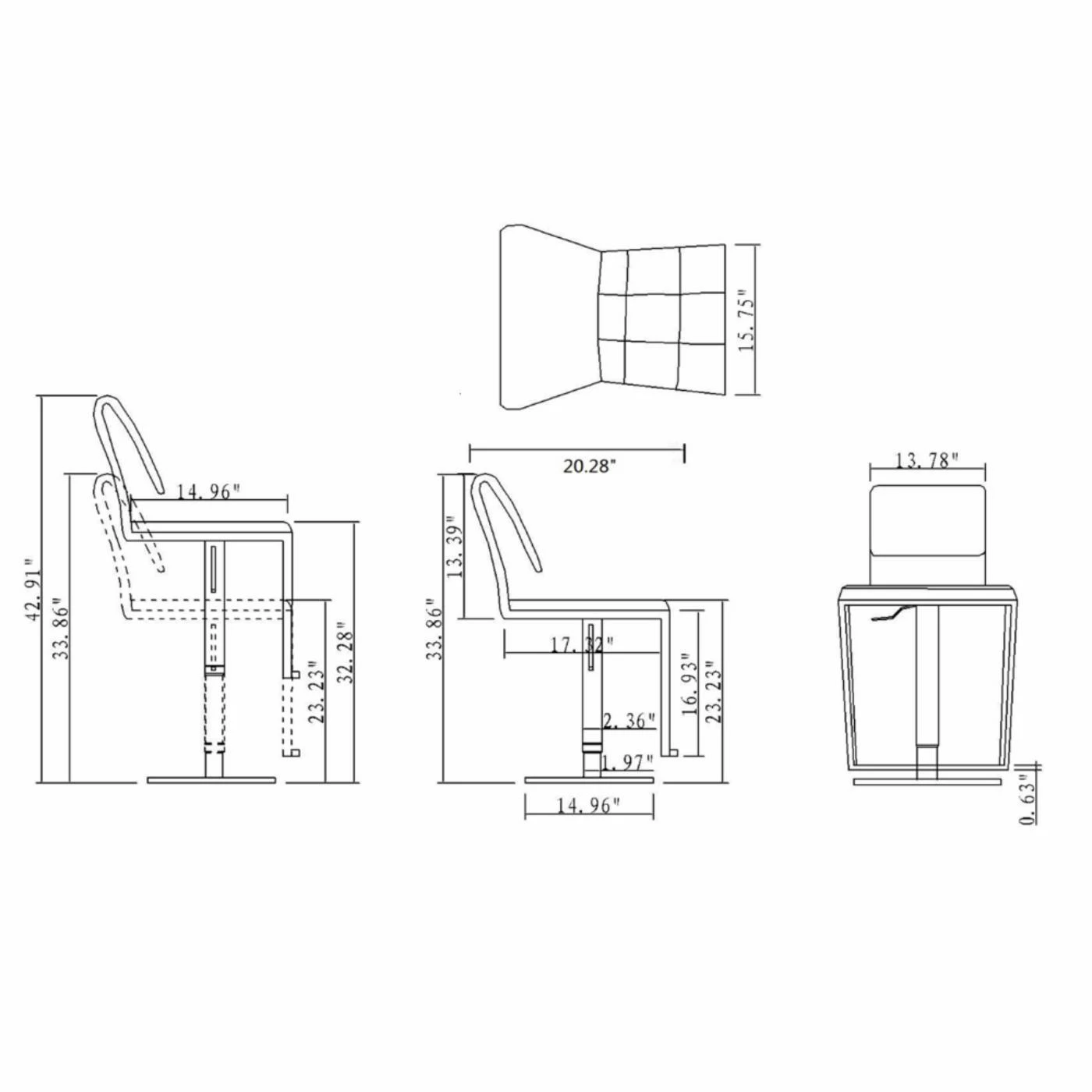 - Adjustable seat height: 23-32in.; Dimensions: 15.75W x 14.96D x 42.91H inches
