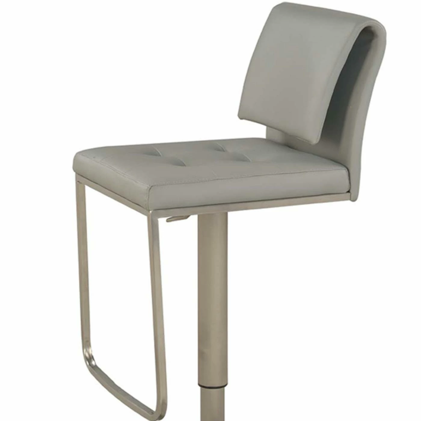 At the pull of a lever, theChintaly Eithne Adjustable Gas Lift Bar Stool can adjust its height to your comfort. This modern stool is upholstered in a stunning grey leather that is extra comfy. It sits on a sturdy stainless steel frame in a silver finish that gleams.