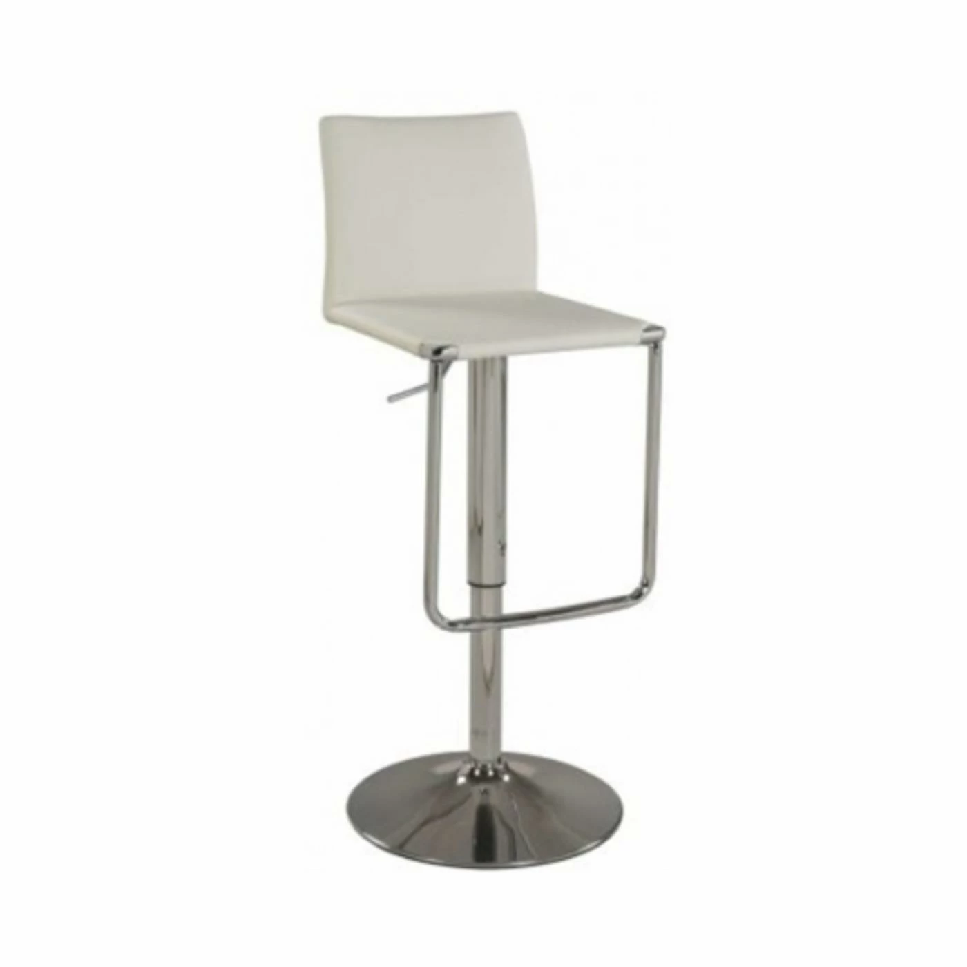 The Chintaly Sybil Gas Lift Adjustable Bar Stool has a modern style sure to turn some heads. This fine stool has a sturdy metal frame that is finished in a polished chrome. The simple seat is upholstered in white leather and can adjust its height at the pull of a lever.