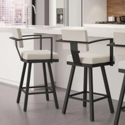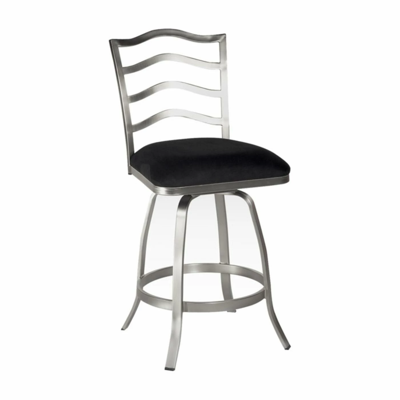 The contemporary style of the Chintaly Weston Memory Return 26 in. Swivel Counter Stool is brought to life with its curving metal frame. It is finished in a stunning brushed nickel. Making the perfect complement, this stool has a deep black fabric upholstery. Perfectly sized for your eat-at kitchen counter. This stool features a memory swivel seat for convenience.
