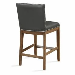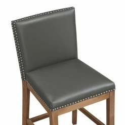 The Comfort Pointe Somerville 25 in. Counter Stool‘s leather gel seat rests atop a sturdy hardwood base in a natural wood finish. Leather gel is a breathable material made of real leather bonded together with polyurethane. This provides the touch, feel, and durability of high-end leather but at a lower cost. (It’s also easier to clean than fabric upholstery!) The stool’s foot levelers are adjustable and the guides protects your floors from scratches and damage. Hand-tacked nailhead trim, a brushed nickel kick plate, and four-sided stretchers mark the Somerville as a step above other counter stools.