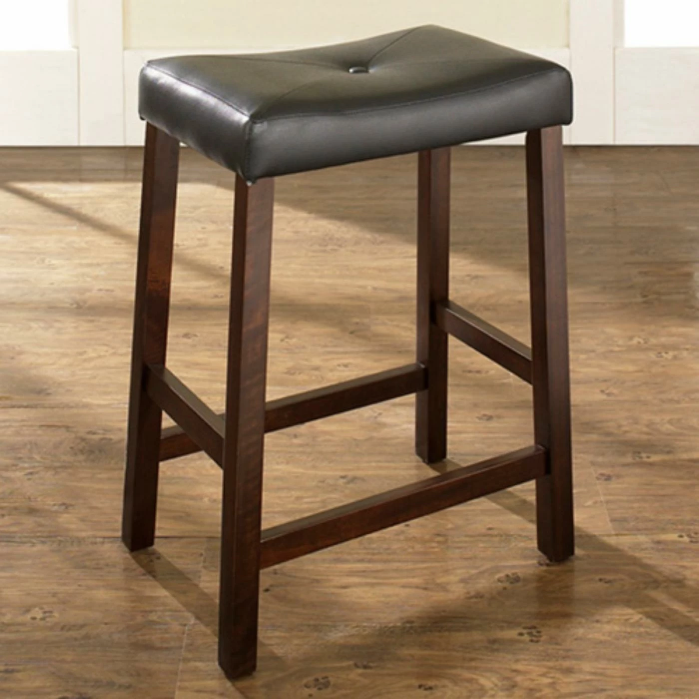 A perfect perch – the Crosley Crockett 24 in. Upholstered Saddle Seat Counter Stool – Set of 2 is your go-to seating choice. Built from hand rubbed hardwoods, these chairs feature a comfortable faux leather covered cushion upon clean, simple legs. Some minor assembly is required. The 24-inch height is ideal for regular dining tables, card tables, or as additional seating for guests and large gatherings in the kitchen.