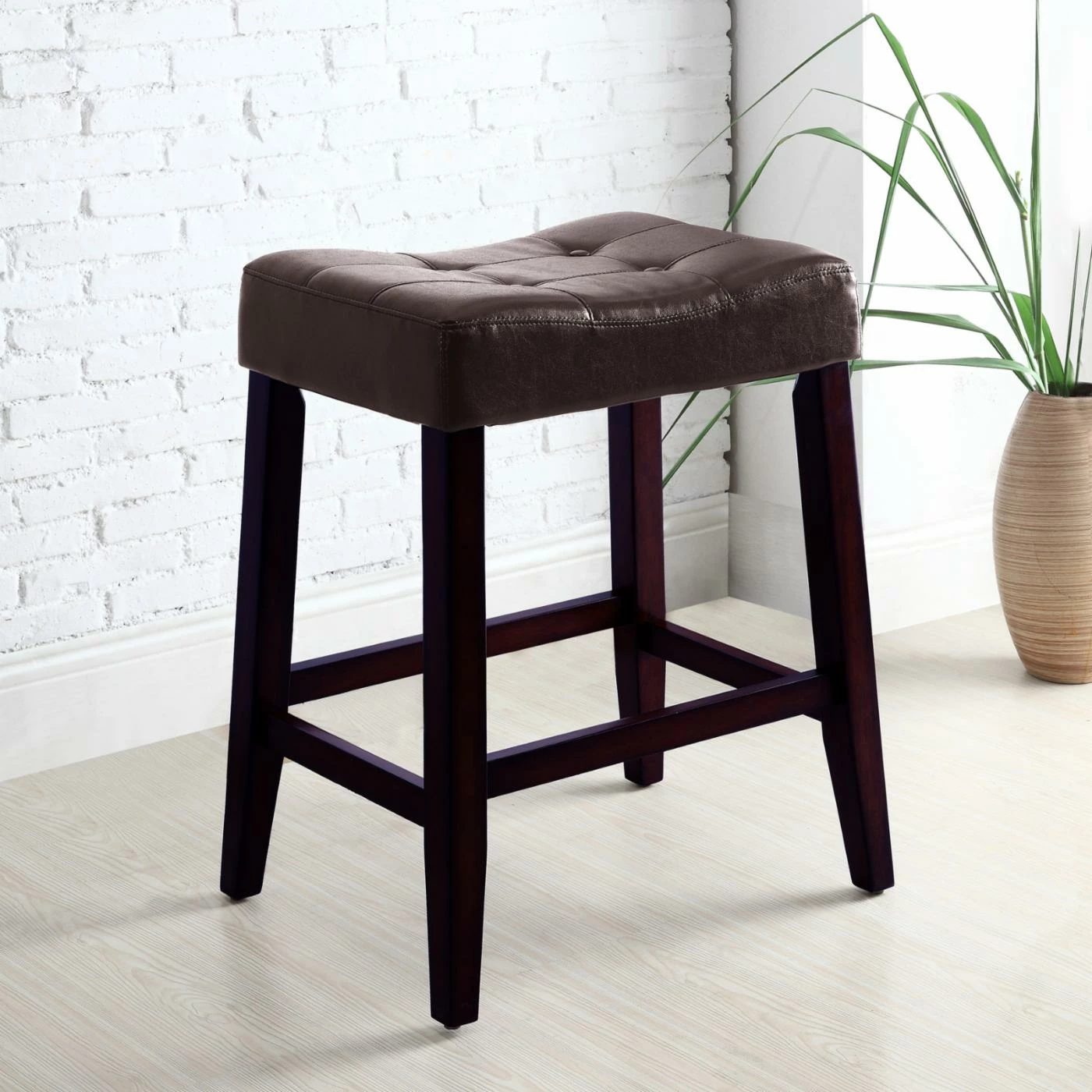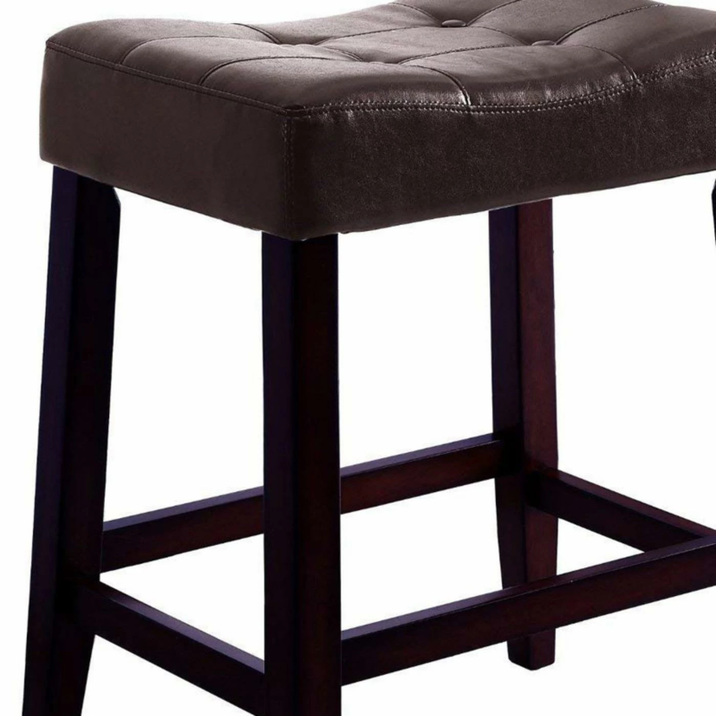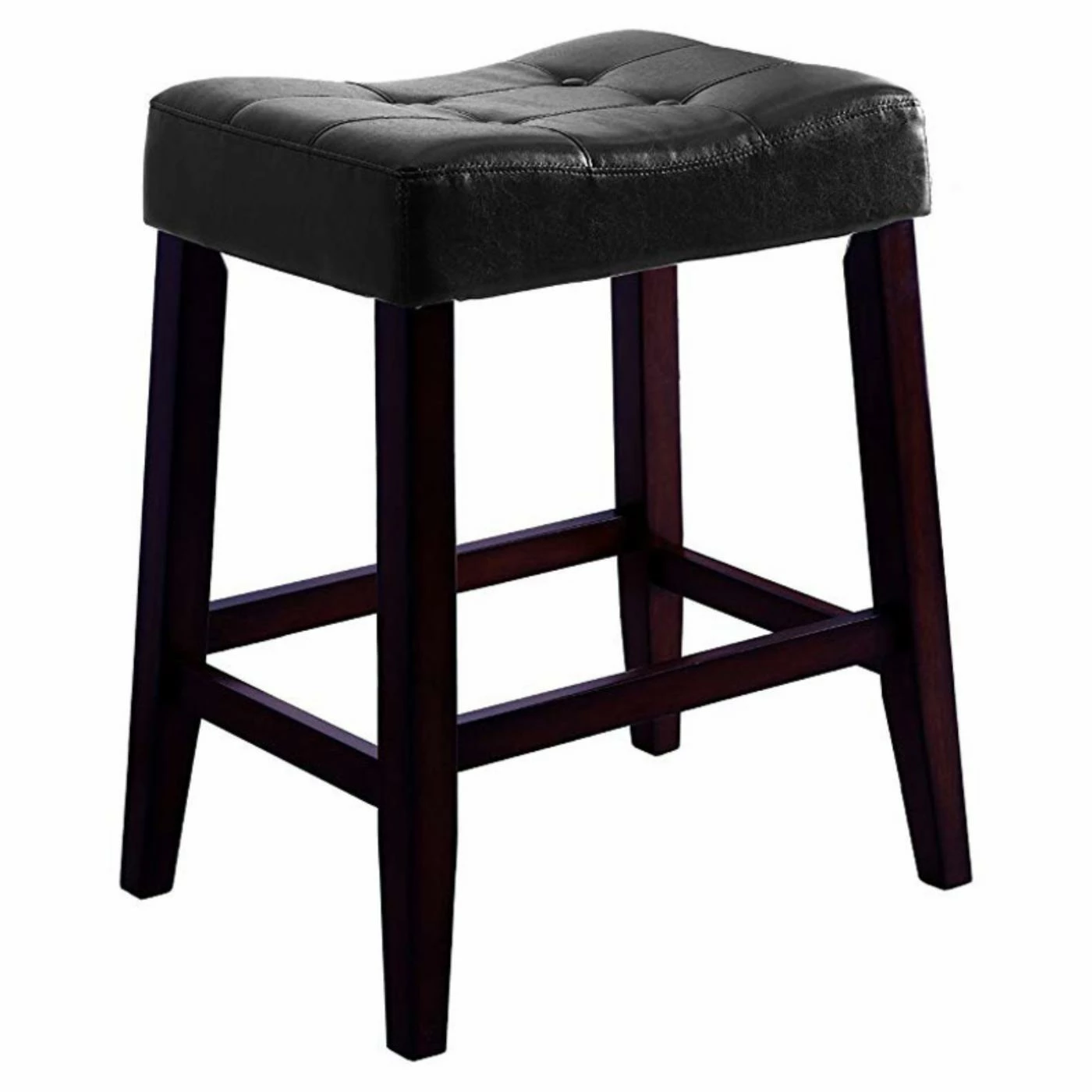 With the Crown Mark Kent Backless Counter Stool – Set of 2, the look of the saddle stool is simple yet elegant. This counter stool gives you additional seating that doesn’t take up much space. Finished in a deep brown, the frame is formed of rubberwood that’s sturdy enough to hold 300 pounds. The seat is padded for comfort and covered in vinyl upholstery in your choice of color.