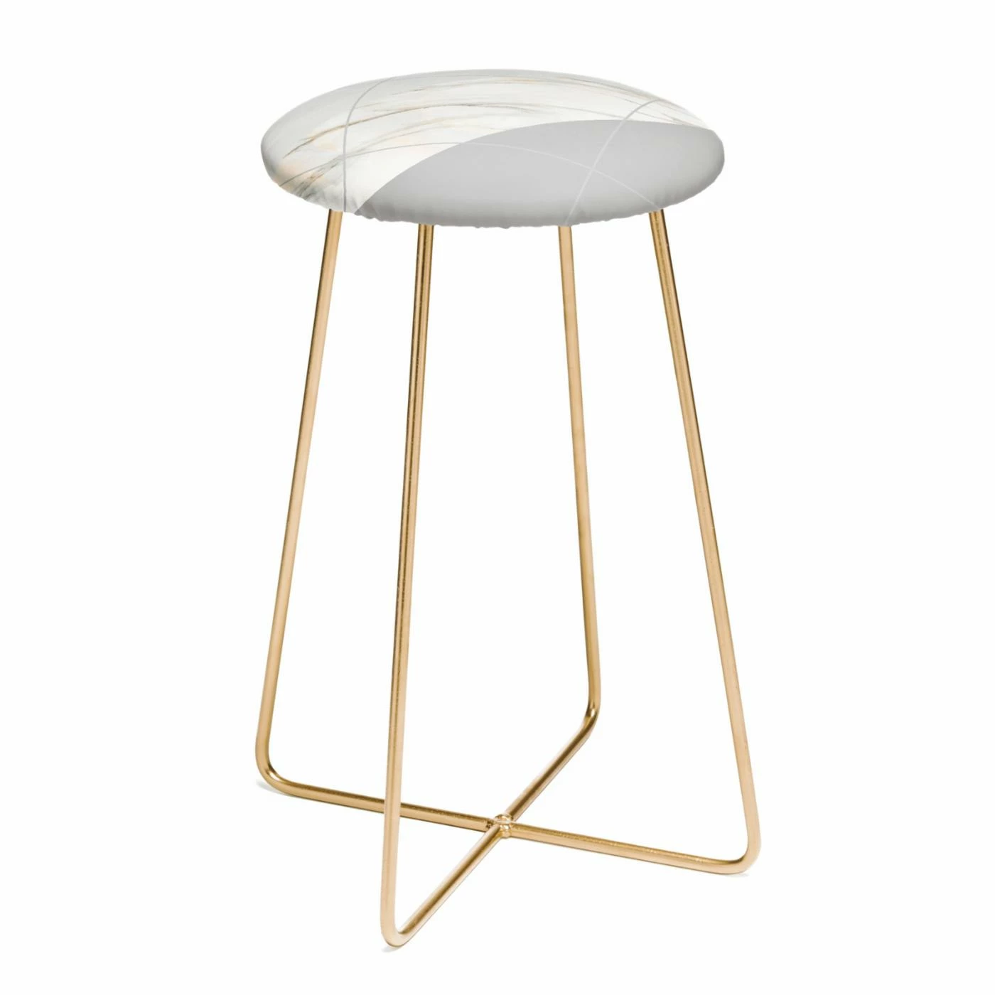 Slim yet sturdy metal legs on the Deny Designs Iveta Abolina Alaskan Gelato 25 in. Backless Counter Stool are made glamorous by your choice of available metallic finish. A mod gray and white design is printed onto the faux leather seat of this custom-made counter stool. It’s perfect at your eat-at counter or in the conversation room.
