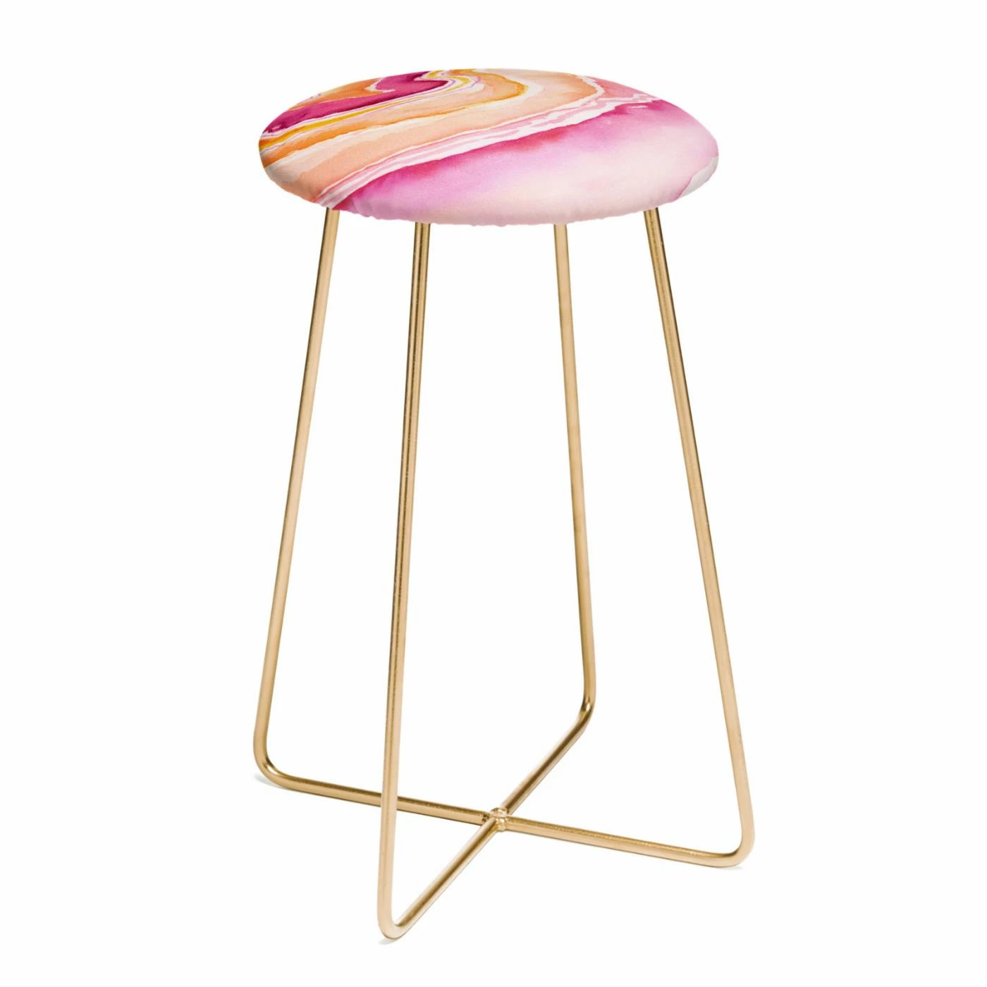 Wake up your breakfast bar seating with the orange and pink Deny Designs Laura Trevey Pink Agate 25 in. Backless Counter Stool. Its original art by Laura Trevey is printed onto the faux leather seat of this custom-made counter stool. To make it perfect for your eat-at breakfast counter, the stool boasts slim metal legs offered in your choice of available metallic finish.