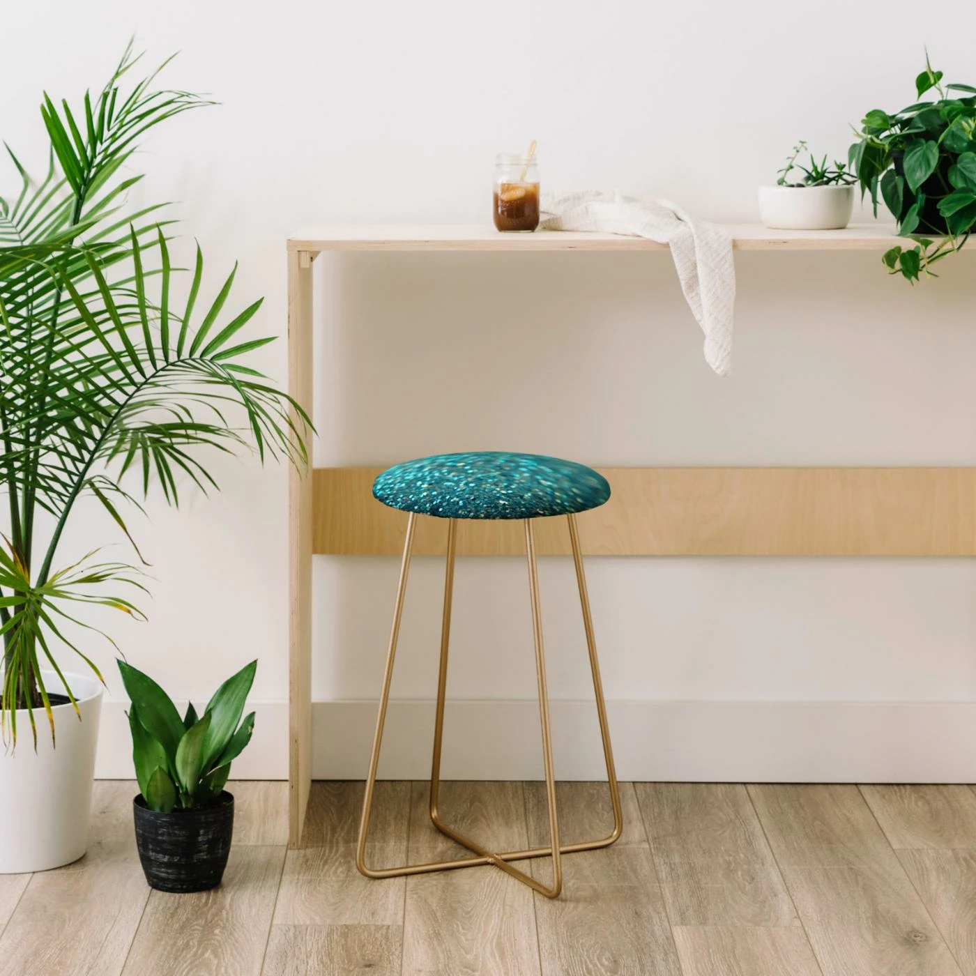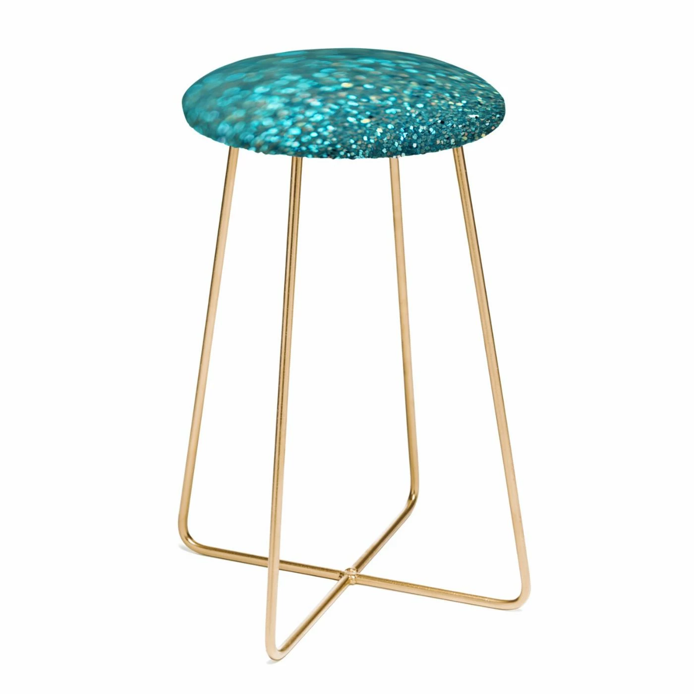 Your inner mermaid called and said you needed the Deny Designs Lisa Argyropoulos Aquios 25 in. Backless Counter Stool. An original turquoise glitter art print adds shimmer to the faux leather seat of this custom-made counter stool. Perfect at your eat-at breakfast counter, the stool stands on slim metal legs in your choice of available metallic finish.