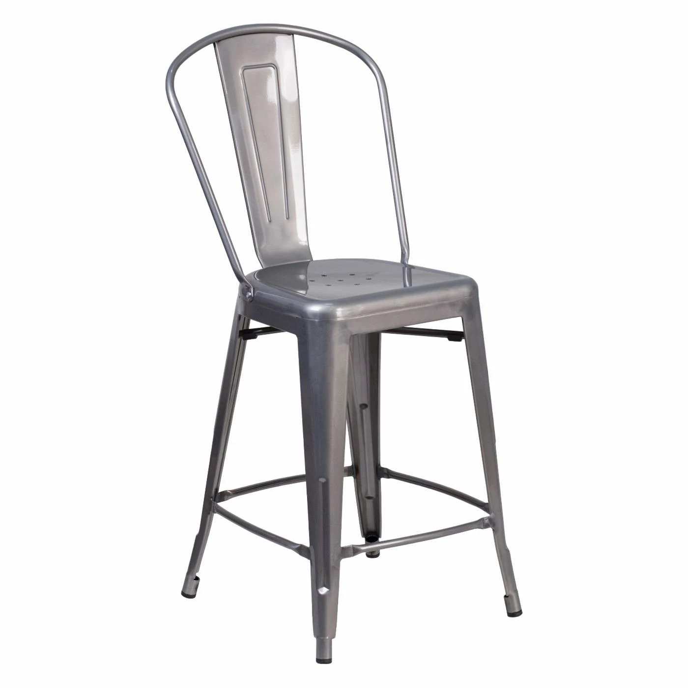 With its chic and modern design, the Flash Furniture 24 in. Clear Coated Indoor Counter Stool with Back is a perfect piece when you need style and reliability. This stool is crafted with robust metal that really shows off what industrial-inspired style is all about. The look of raw metal is protected by a clear-coat finish that inhibits corrosion. Nylon foot protectors also prevent scuffs and marring on both indoor and outdoor surfaces. The wide seat and curved backrest offer comfort and support.