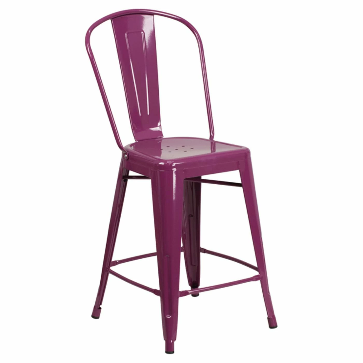 Show off your love for vintage style by outfitting your indoor or outdoor bar with the Flash Furniture 24 in. Metal Indoor-Outdoor Counter Height Stool with Splat Back. This counter-height stool is constructed from durable metal. The curved back hugs the body while stretchers provide a place to put your feet.