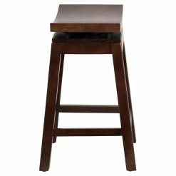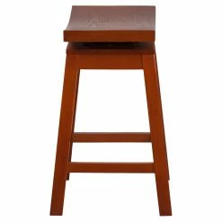 Deliver stylish seating to your kitchen, pub table, bar, or game room with the Flash Furniture 26 in. Saddle Seat Counter Height Stool with Auto Swivel Return. This backless, counter-height stool is solidly constructed from rubberwood in your choice of rustic finish to best match your decor. It features a simple saddle-style seat that’s equipped with an auto-swivel that returns it back to its original position. The integrated floor glides help protect against damaging scratches.